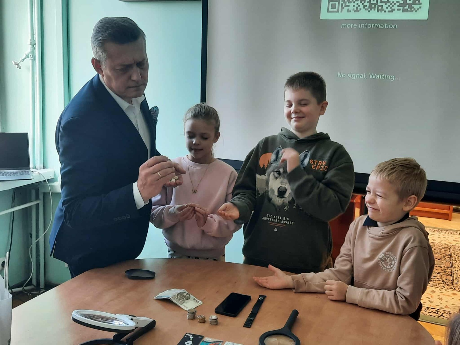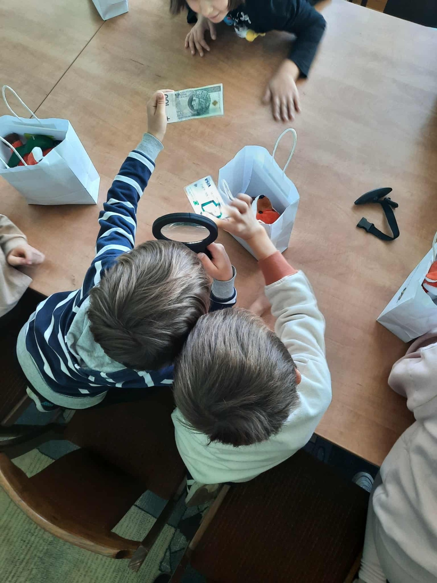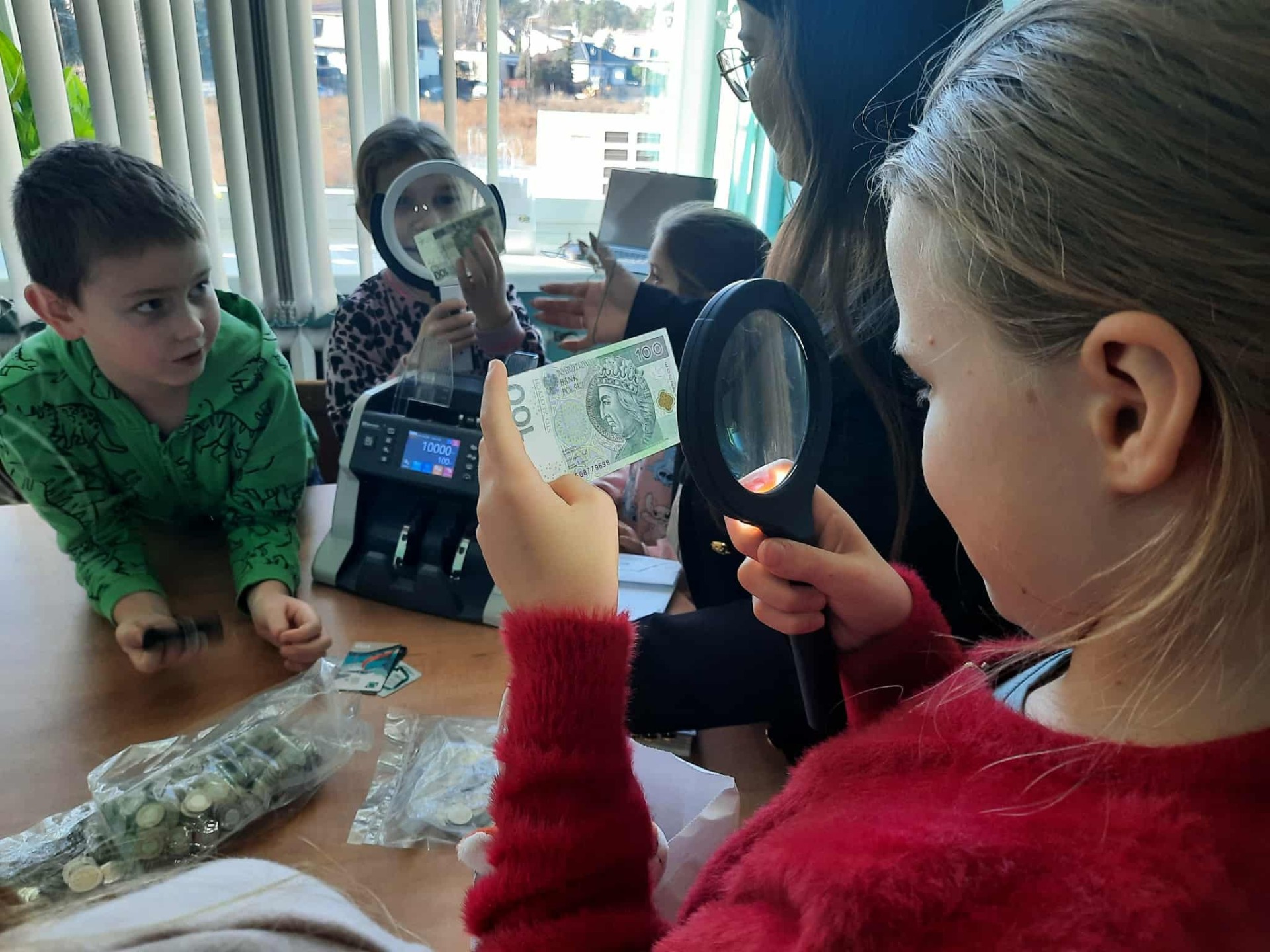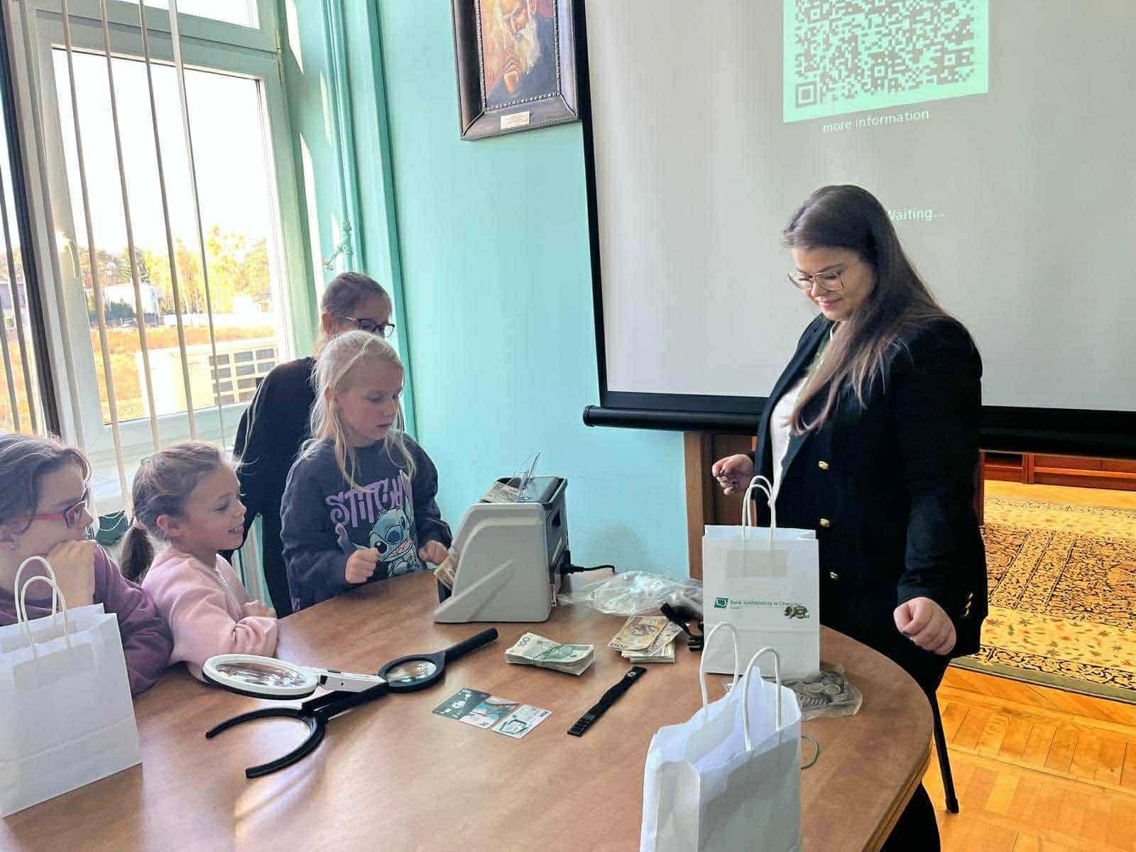 Nasi uczniowie mogli porozmawiać z pracownikami banku i dowiedzieć się, na czym polega ich praca, a nawet użyć liczarki do pieniędzy.