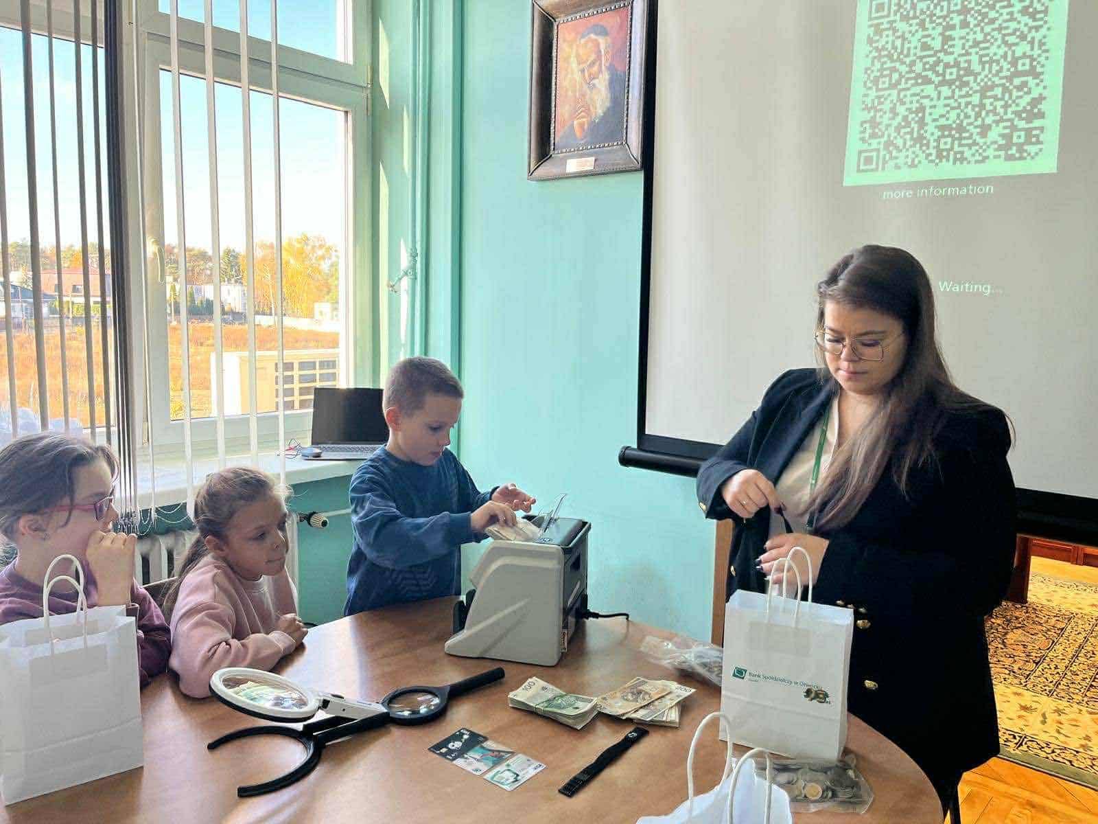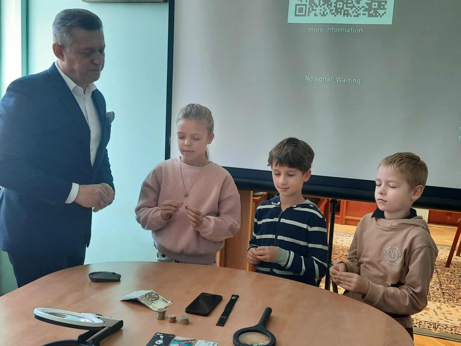 Podczas wizyty w Banku Spółdzielczym w Otwocku dzieci dowiedziały się, jak powstał bank, kto go tworzy, w jaki sposób zabezpieczone są pieniądze.