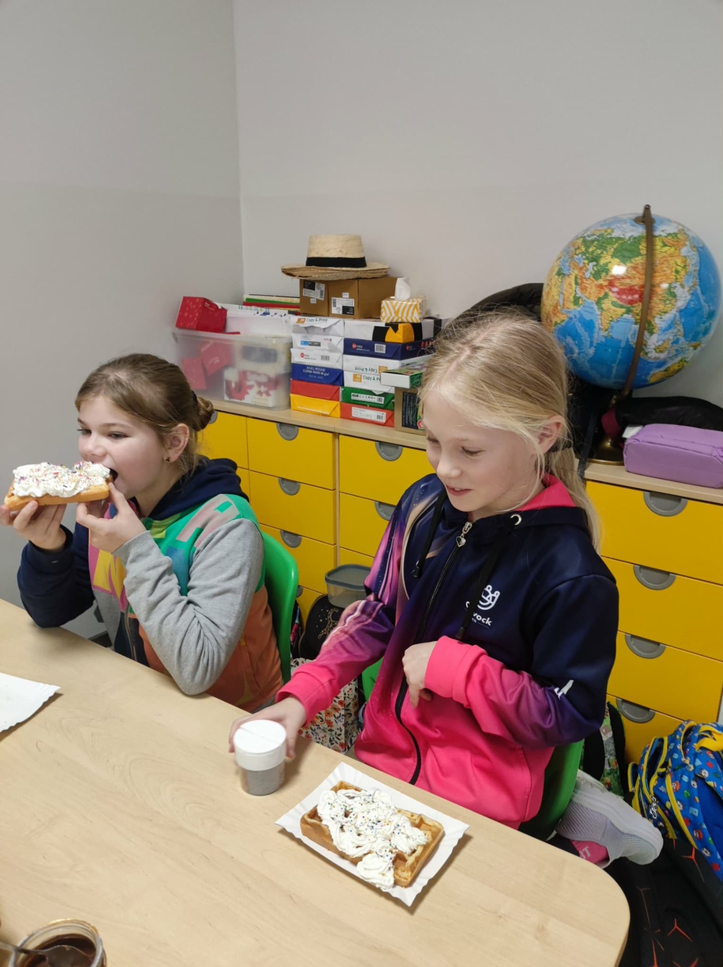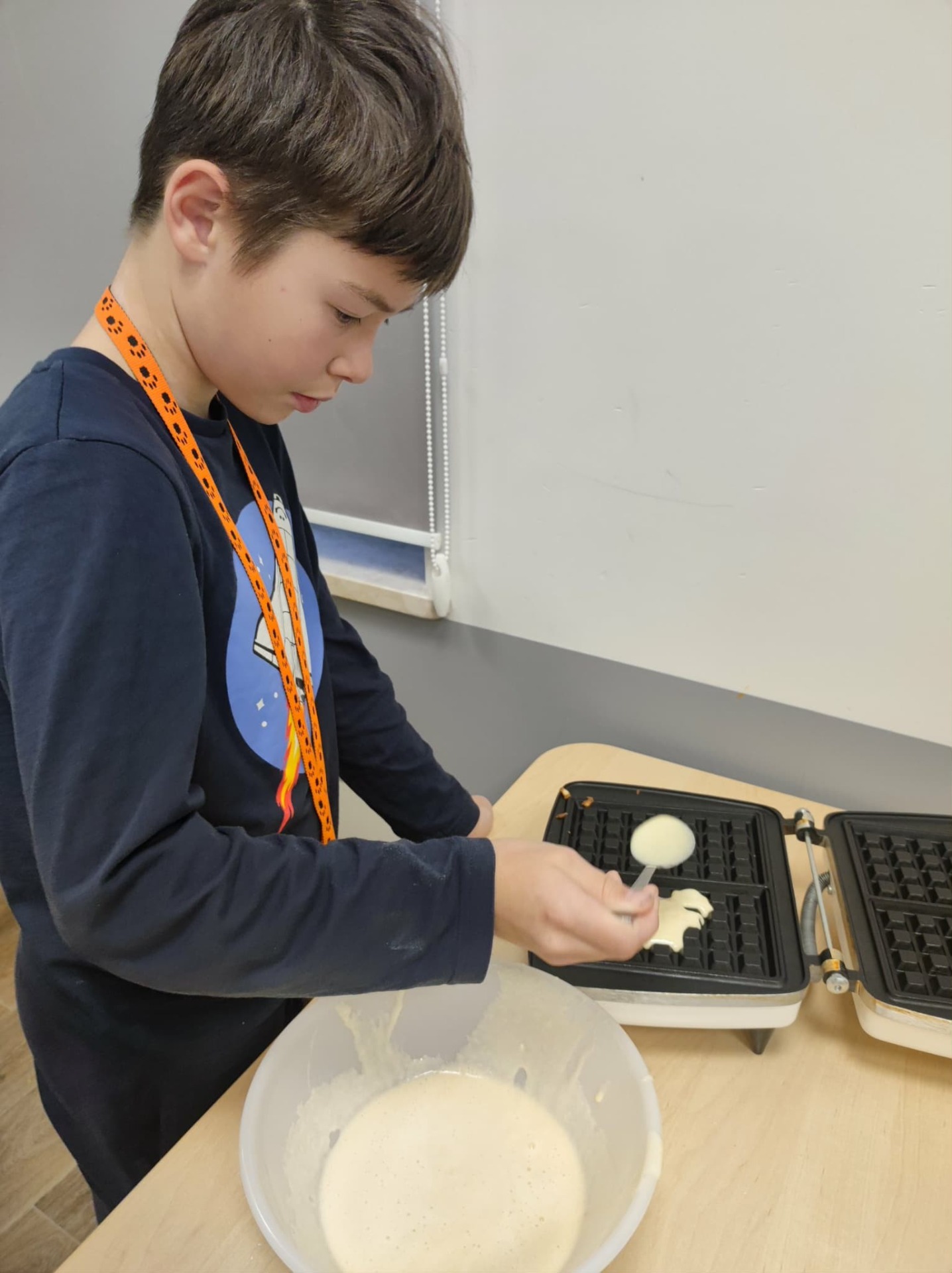 W miniony czwartek przygotowaliśmy pyszne gofry. Przepis pochodził ze wspólnie opracowanej książki kucharskiej. Na początku przypomnieliśmy zasady bezpieczeństwa w kuchni. Następnie przystąpiliśmy do pracy. Na zasadzie plebiscytu wybraliśmy nazwę dla naszych gofrów.