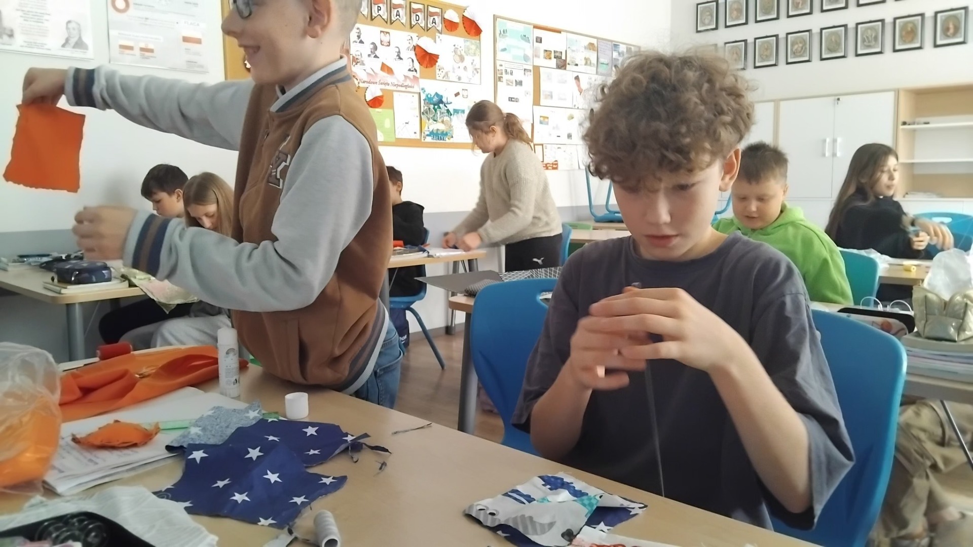 Dziś wybór kalendarzy z czekoladkami, kosmetykami, zabawkami i upominkami jest ogromny. 5A zamiast gotowego kalendarza, stworzyła własny- klasowy. Korzystając z materiałów do szycia, zakupionych w ramach projektu