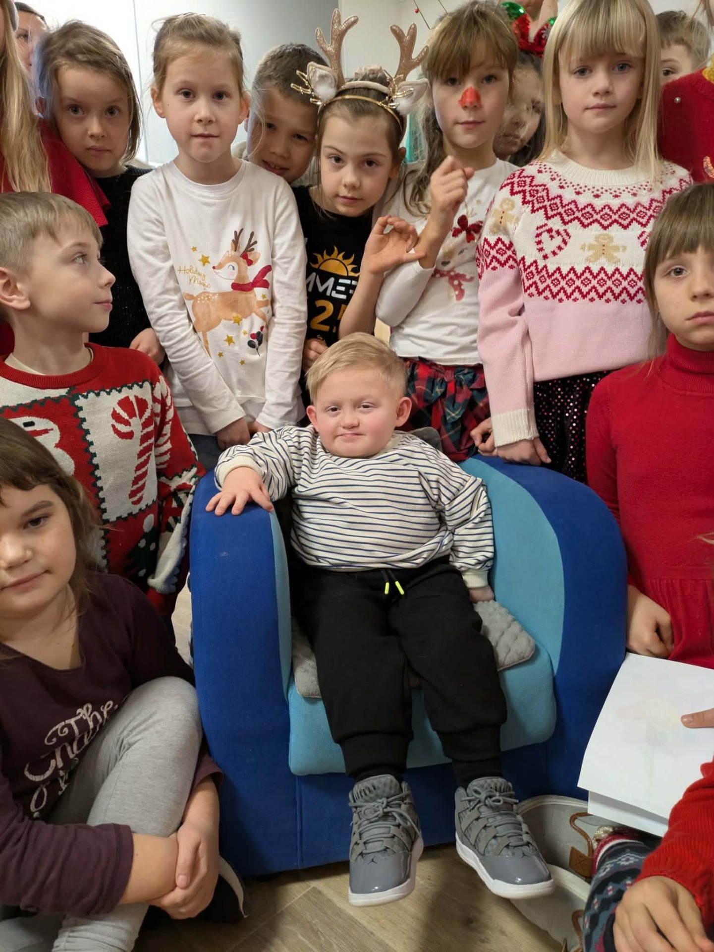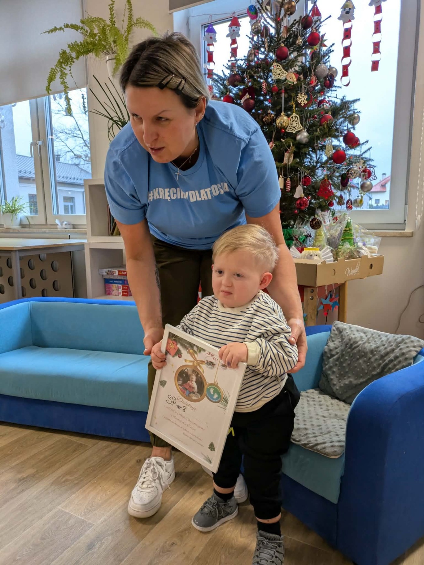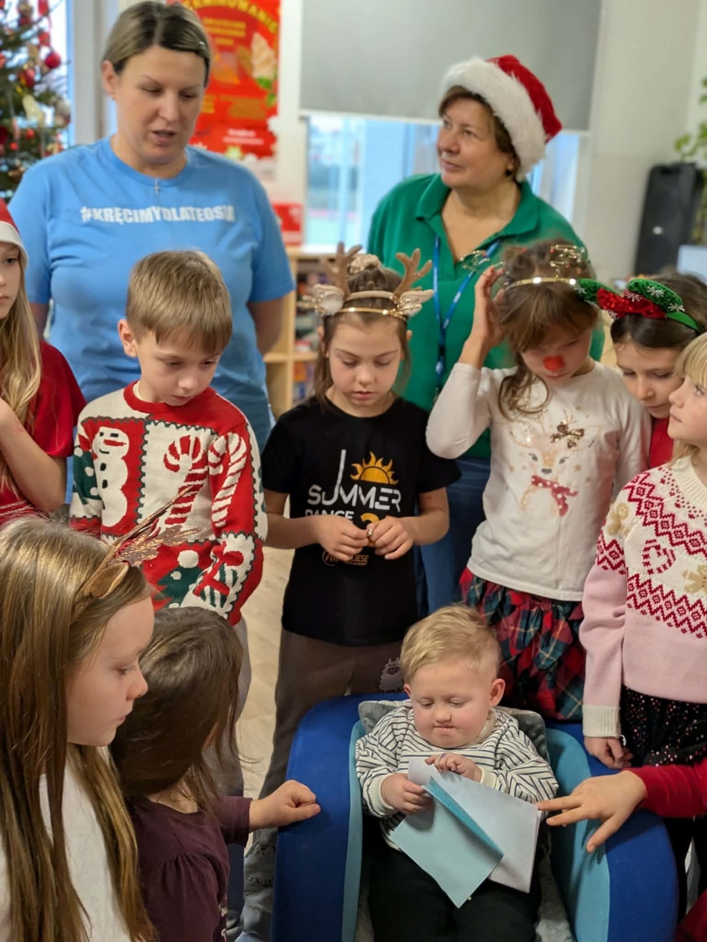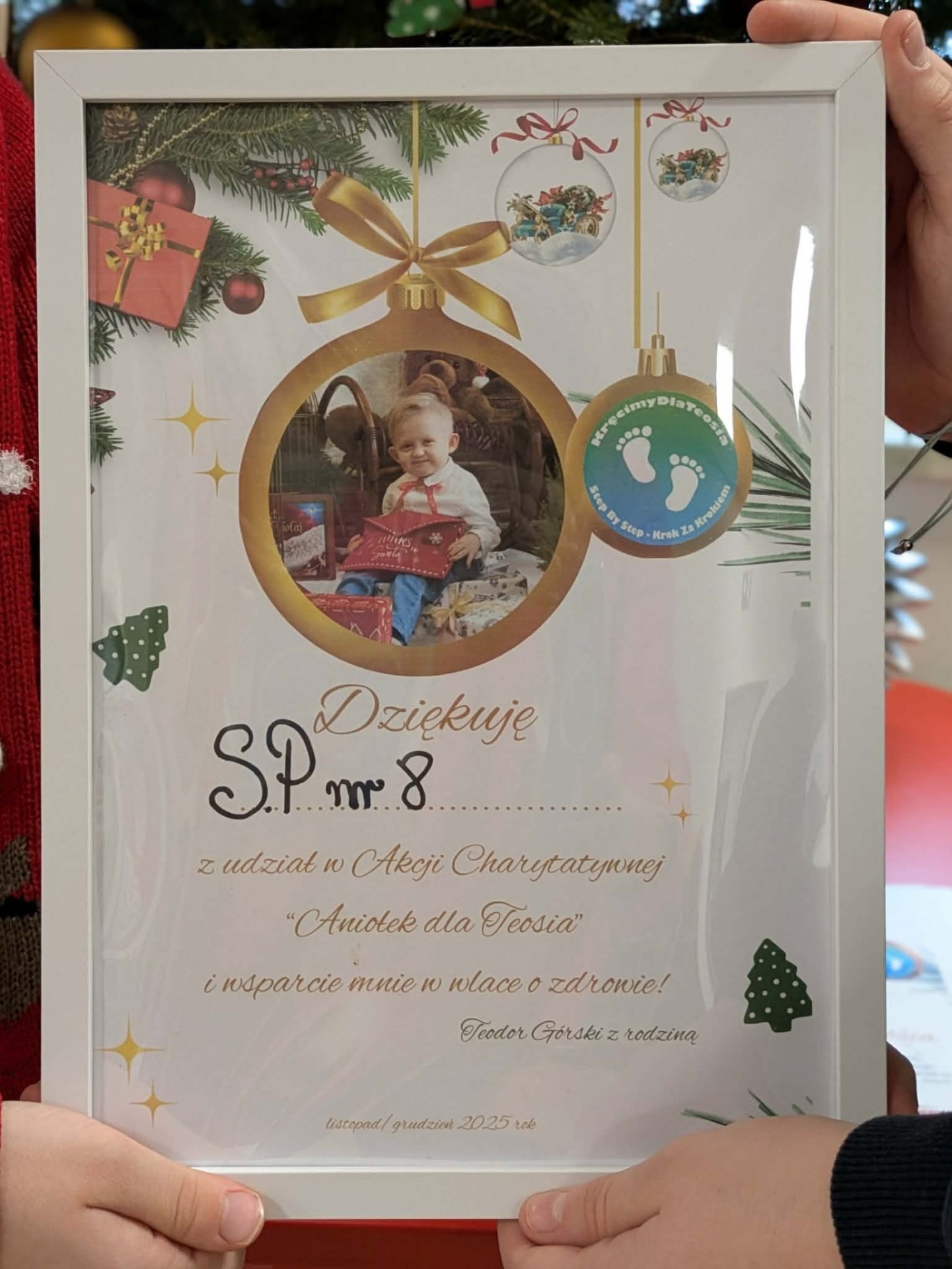 wręczyły Teosiowi własnoręcznie wykonane upominki, stworzone w ramach akcji „Anioły dla Teosia”. Te same prace będzie można zakupić podczas nadchodzącego kiermaszu, a cały dochód zasili fundusze na kolejną operację ortopedyczną chłopca.