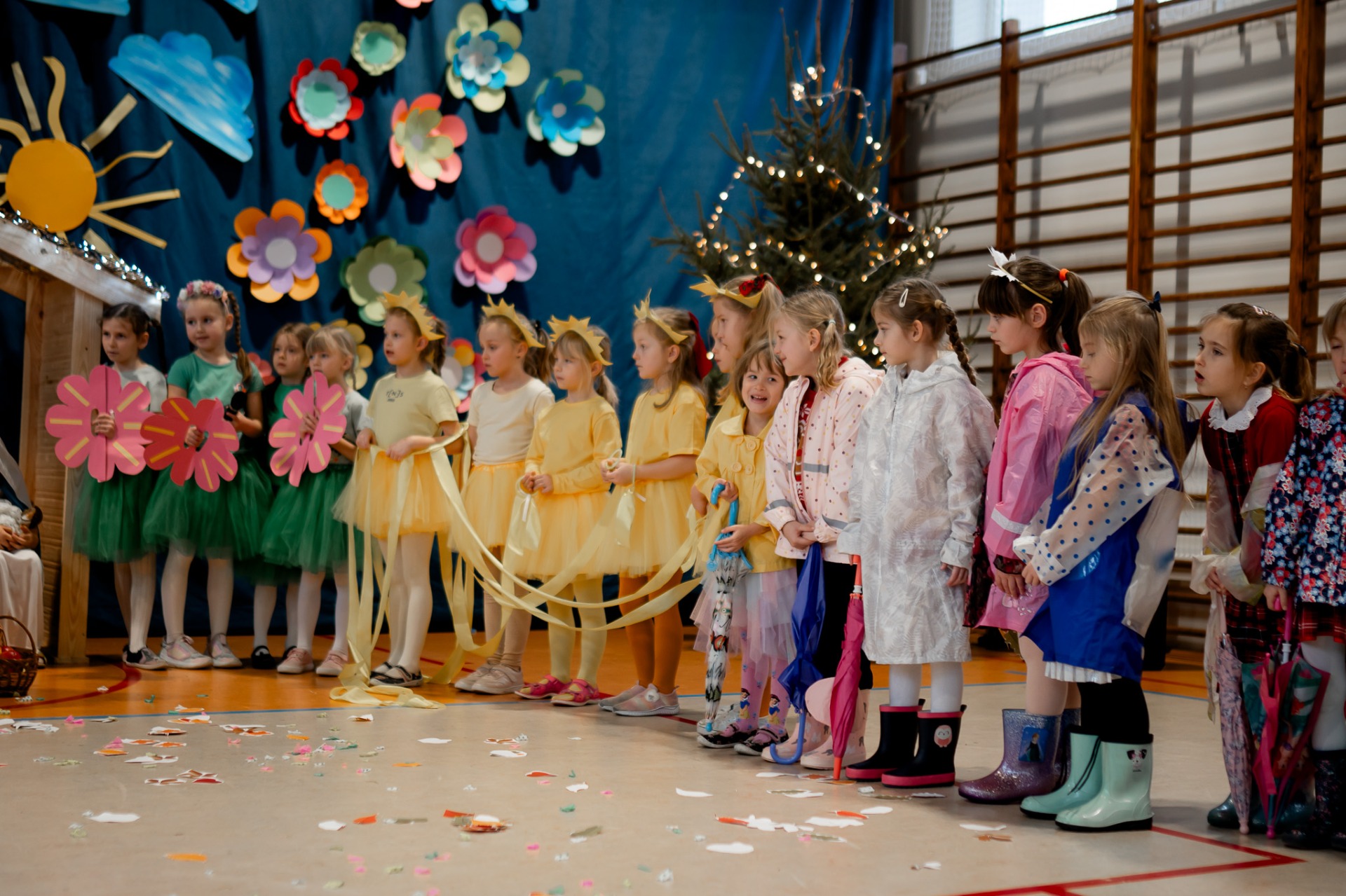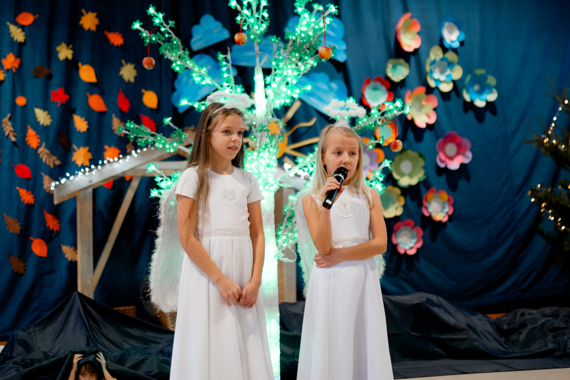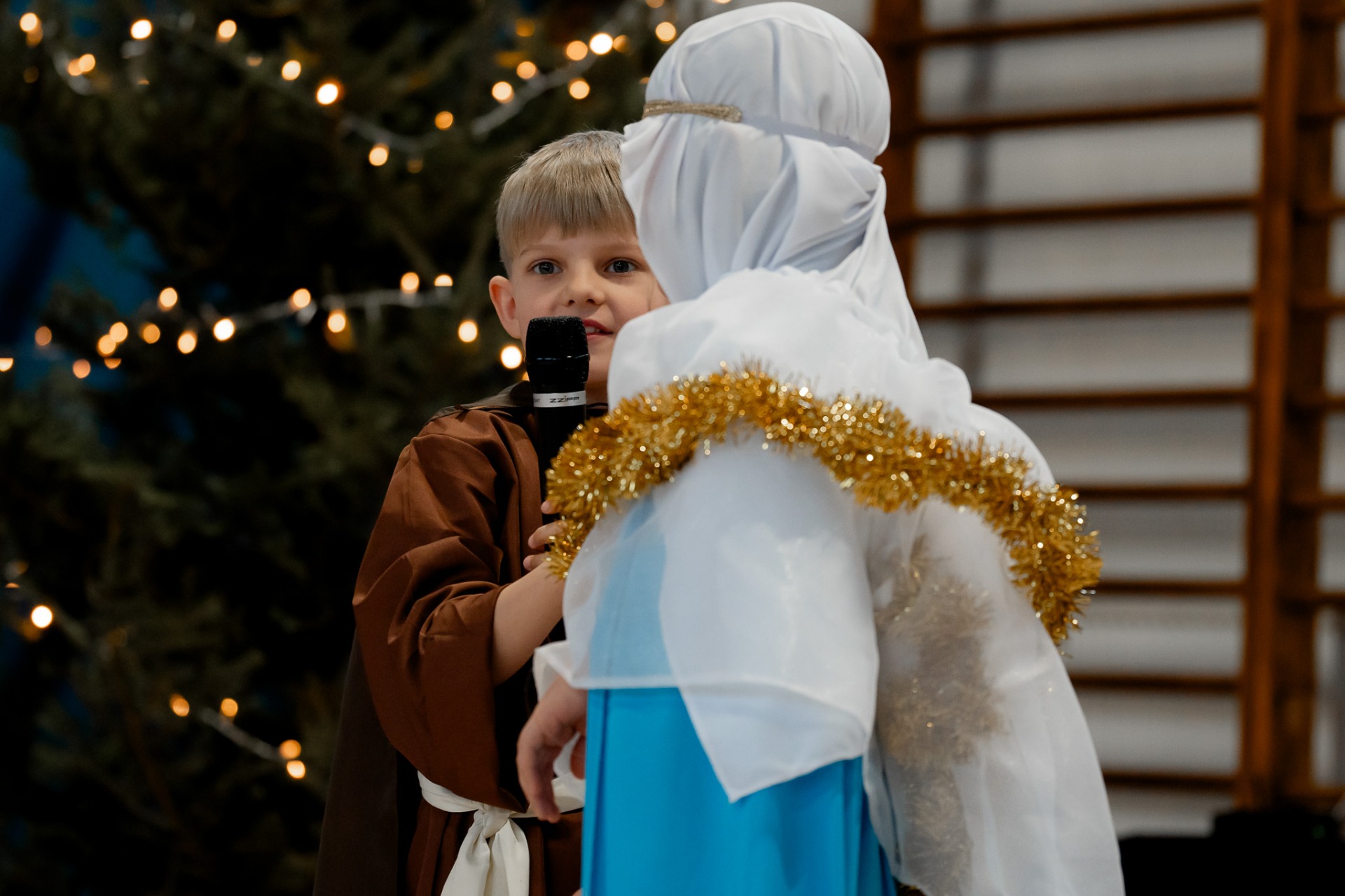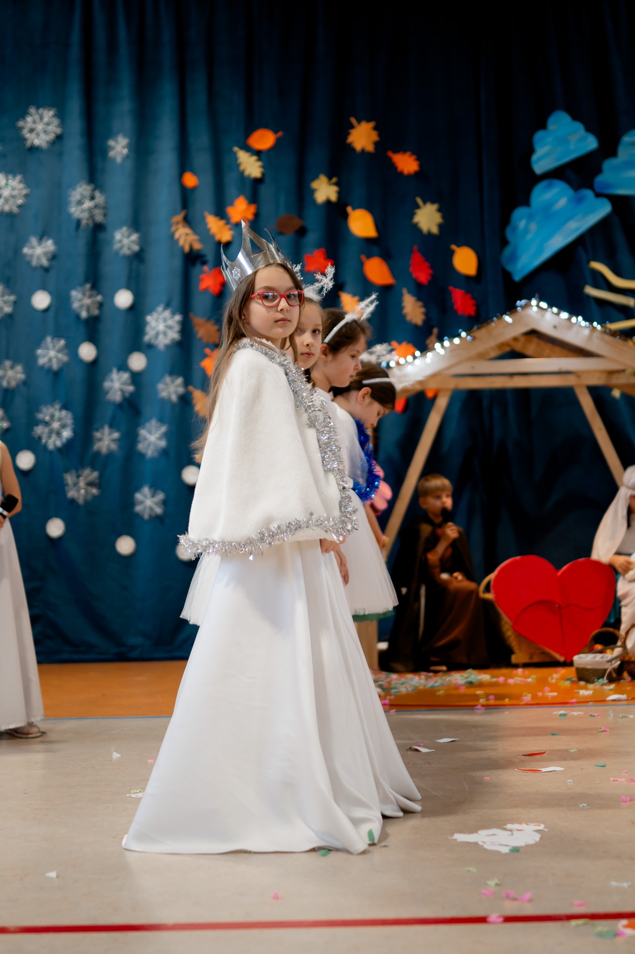 Jasełka, które odbyły się w naszej szkole, były wyjątkowym przeżyciem, pełnym ciepła i refleksji nad tajemnicą narodzenia Jezusa. Ten szczególny czas pozwolił nam na nowo zatrzymać się przy tym, co najważniejsze – nadziei, którą jest Jezus. Przedstawienie prowadziło widzów symbolicznie przez pory roku, ukazując, że Jego obecność towarzyszy nam nieustannie, niezależnie od czasu i okoliczności. Wszystkie dzieci wraz z nauczycielami i pracownikami obsługi wykazali ogromne zaangażowanie w przygotowanie występu. Przedstawienie było bardzo dynamiczne pod względem choreograficznym, kolorowe dzięki scenografii zmieniających się pór roku, obfitowało w piękne słowa i muzykę. Dziękujemy za Waszą pracę i serca włożone w stworzenie tego pięknego, poruszającego świadectwa wiary i wspólnoty.