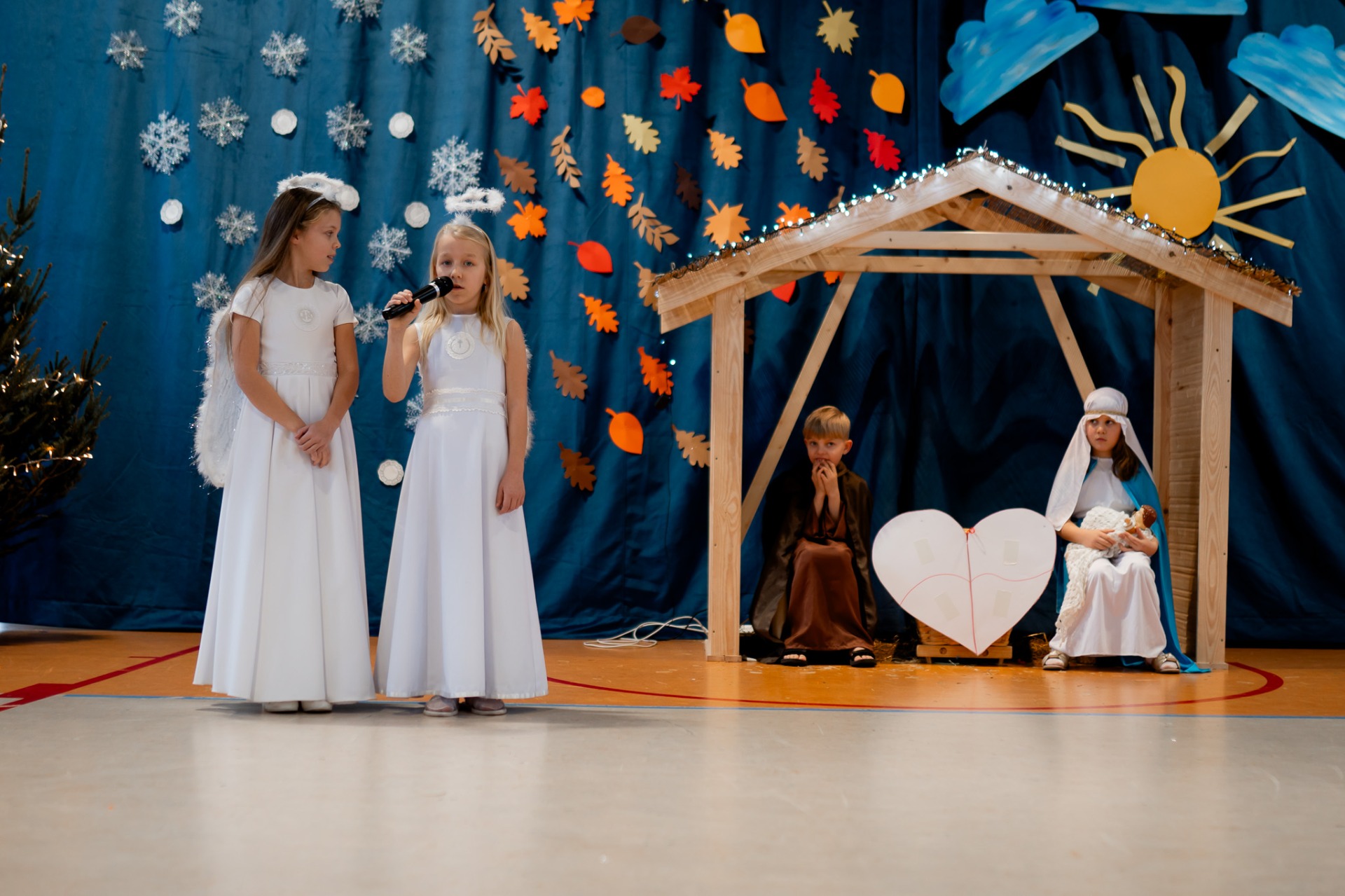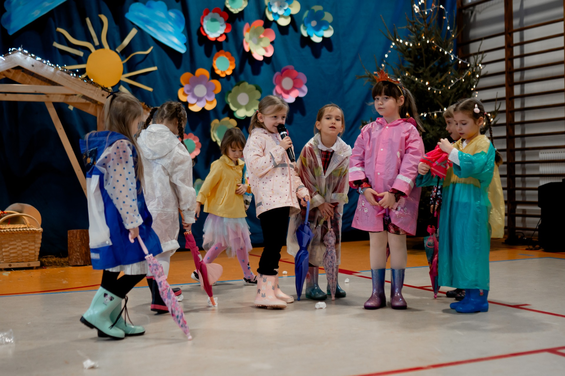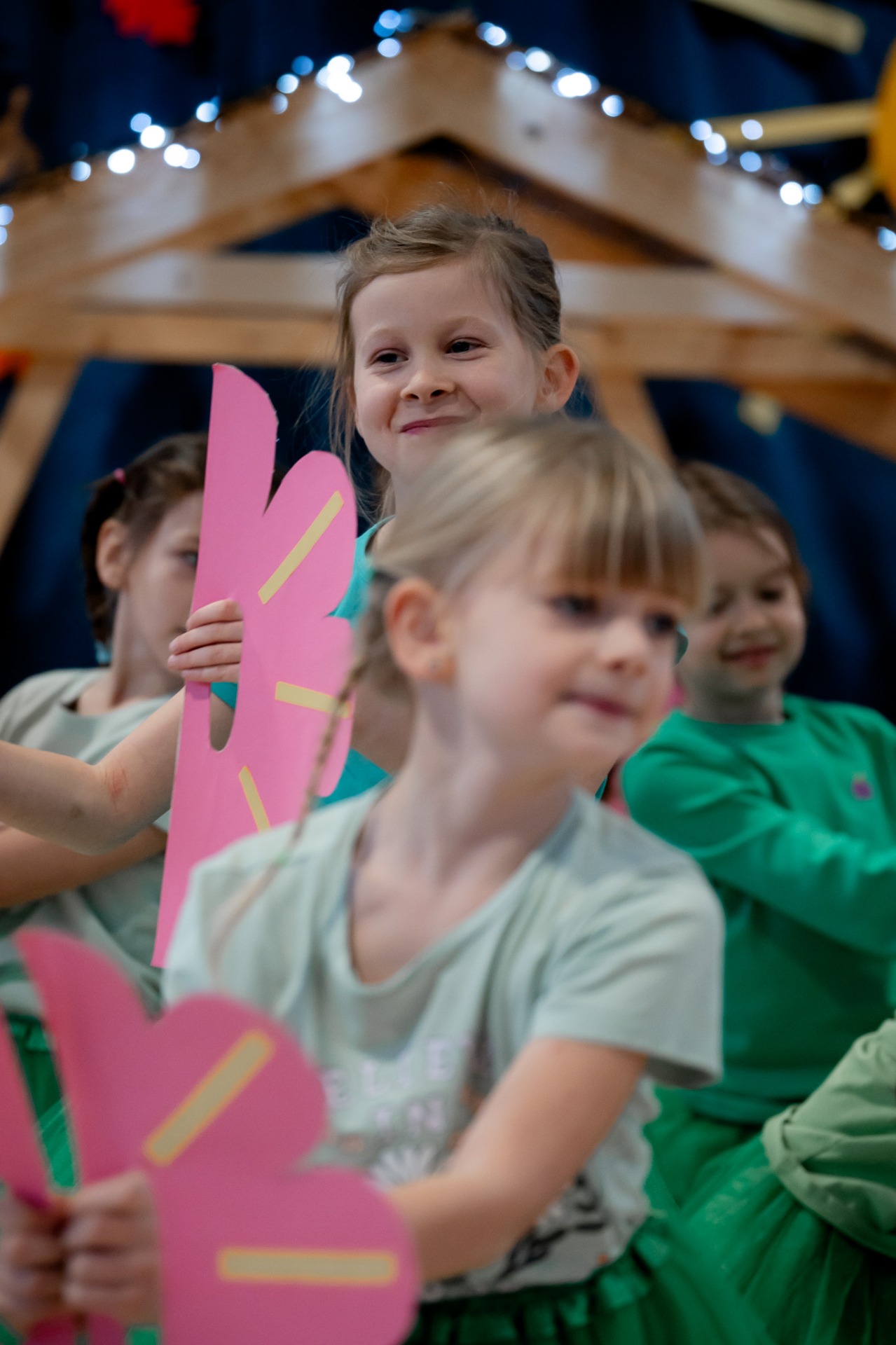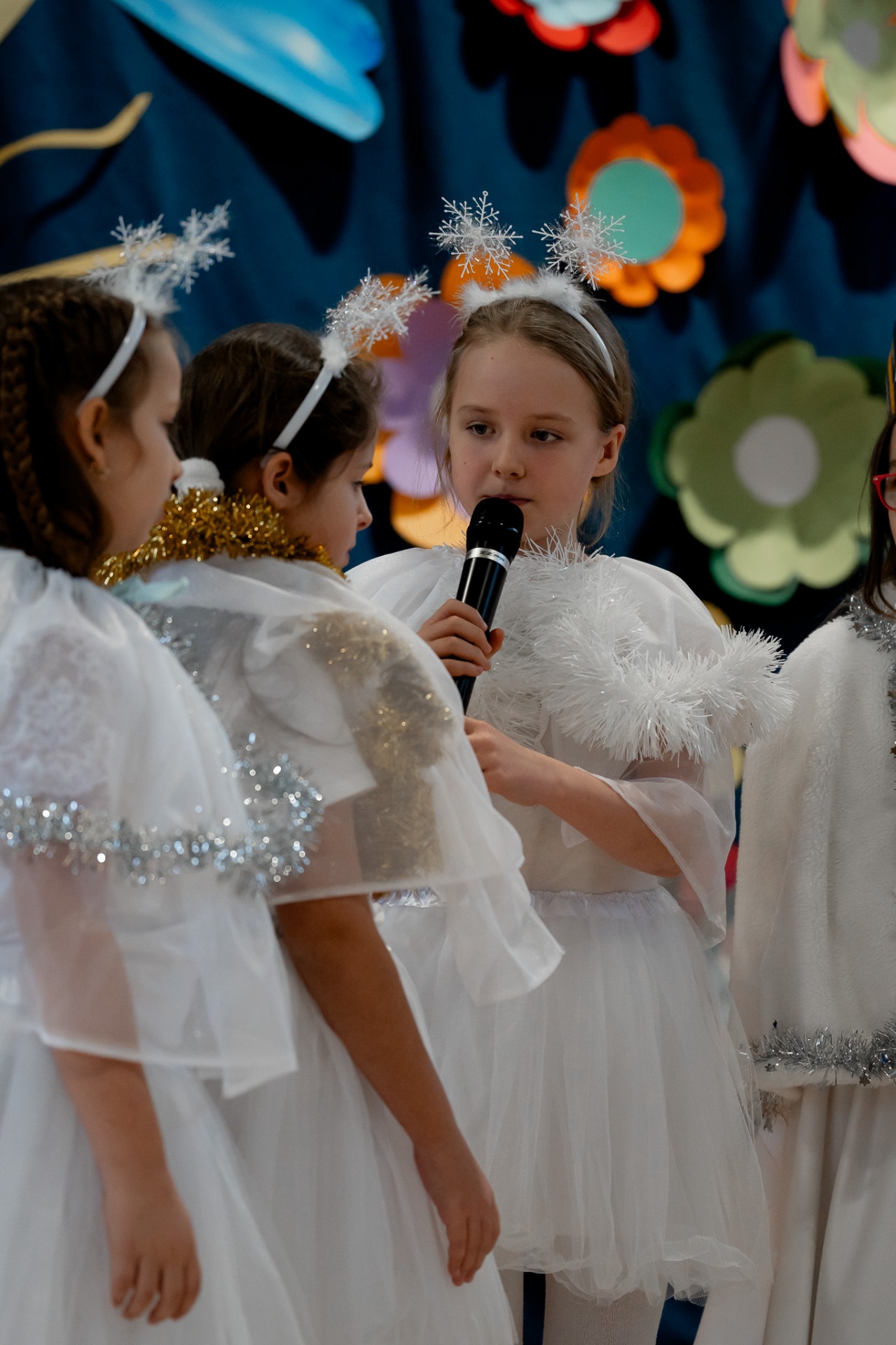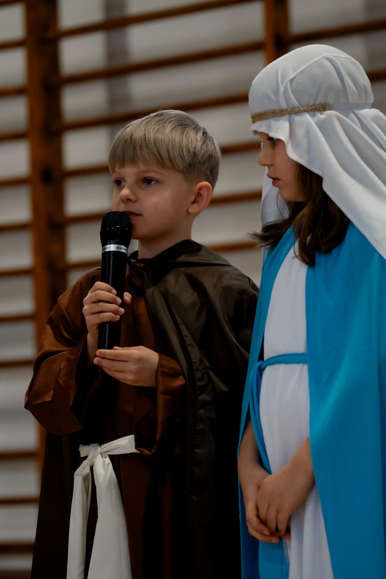 Jasełka, które odbyły się w naszej szkole, były wyjątkowym przeżyciem, pełnym ciepła i refleksji nad tajemnicą narodzenia Jezusa. Ten szczególny czas pozwolił nam na nowo zatrzymać się przy tym, co najważniejsze – nadziei, którą jest Jezus. Przedstawienie prowadziło widzów symbolicznie przez pory roku, ukazując, że Jego obecność towarzyszy nam nieustannie, niezależnie od czasu i okoliczności. Wszystkie dzieci wraz z nauczycielami i pracownikami obsługi wykazali ogromne zaangażowanie w przygotowanie występu. Przedstawienie było bardzo dynamiczne pod względem choreograficznym, kolorowe dzięki scenografii zmieniających się pór roku, obfitowało w piękne słowa i muzykę. Dziękujemy za Waszą pracę i serca włożone w stworzenie tego pięknego, poruszającego świadectwa wiary i wspólnoty.