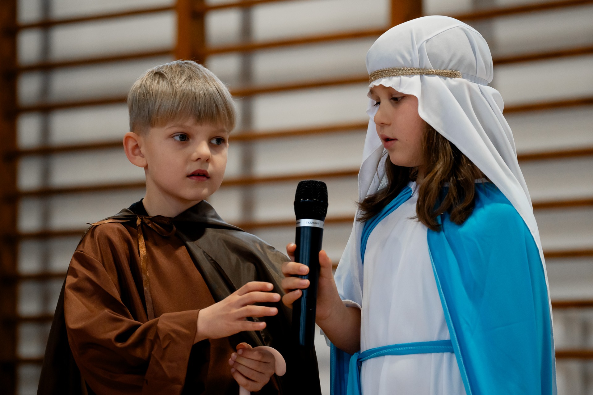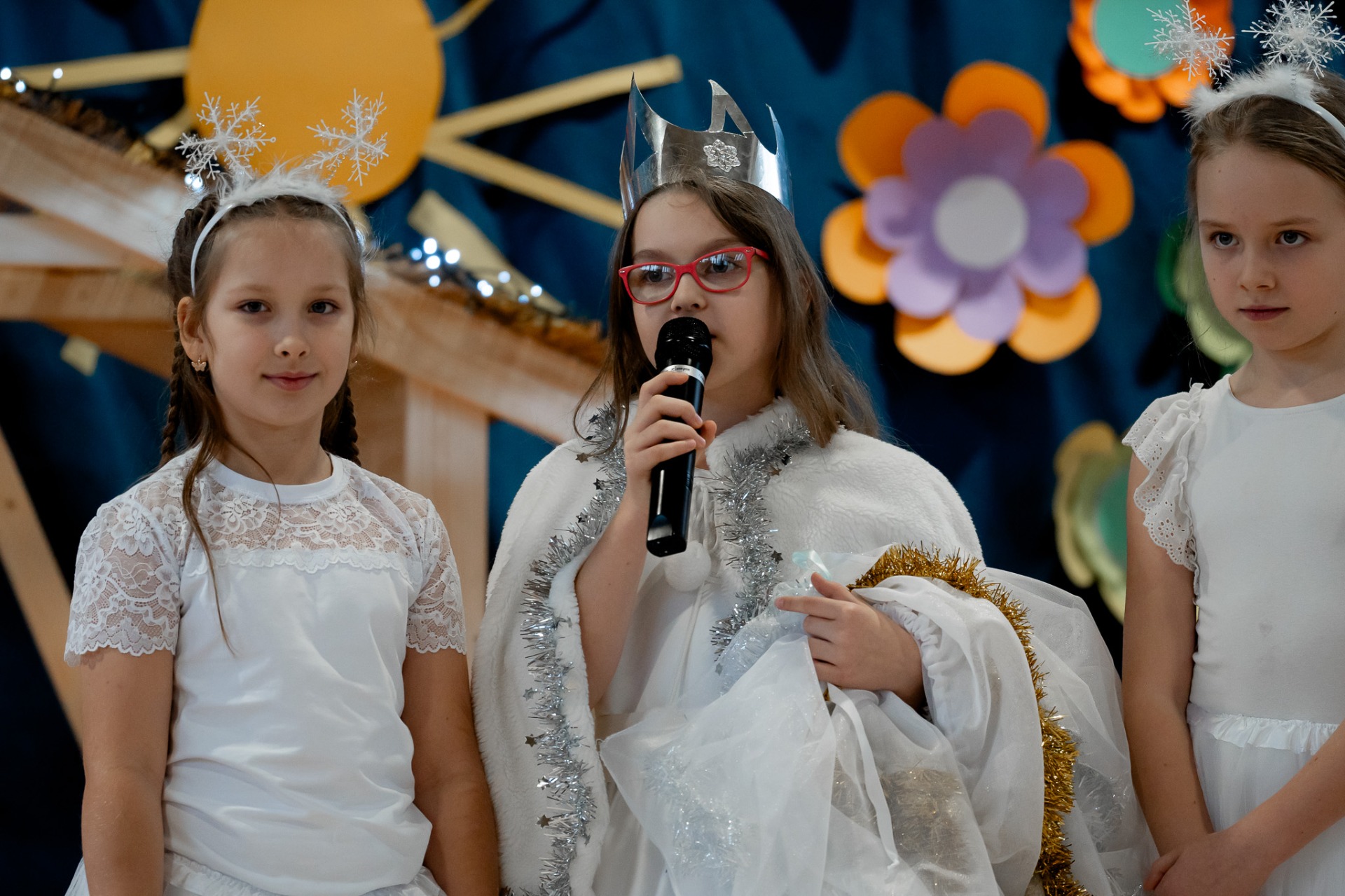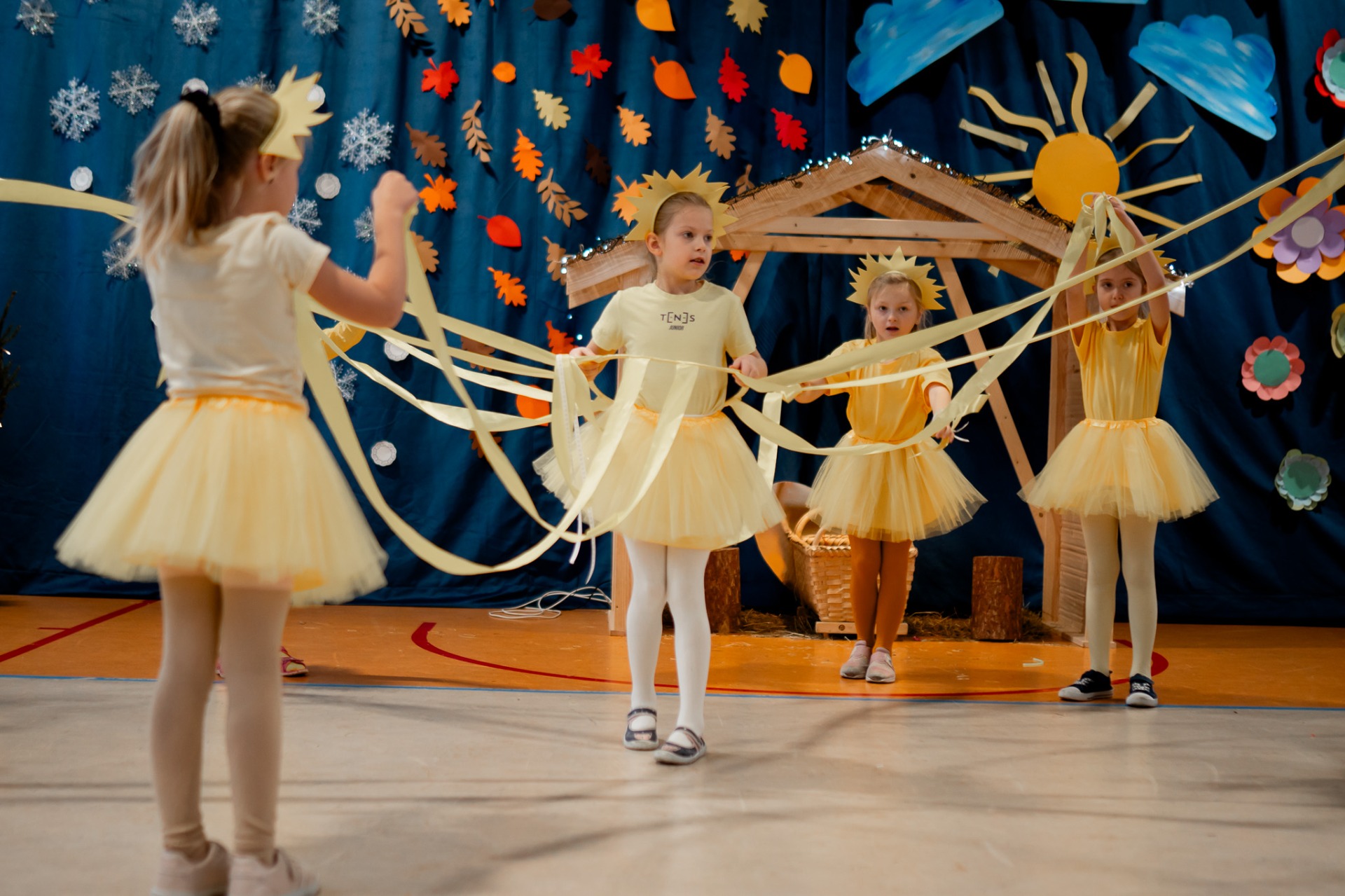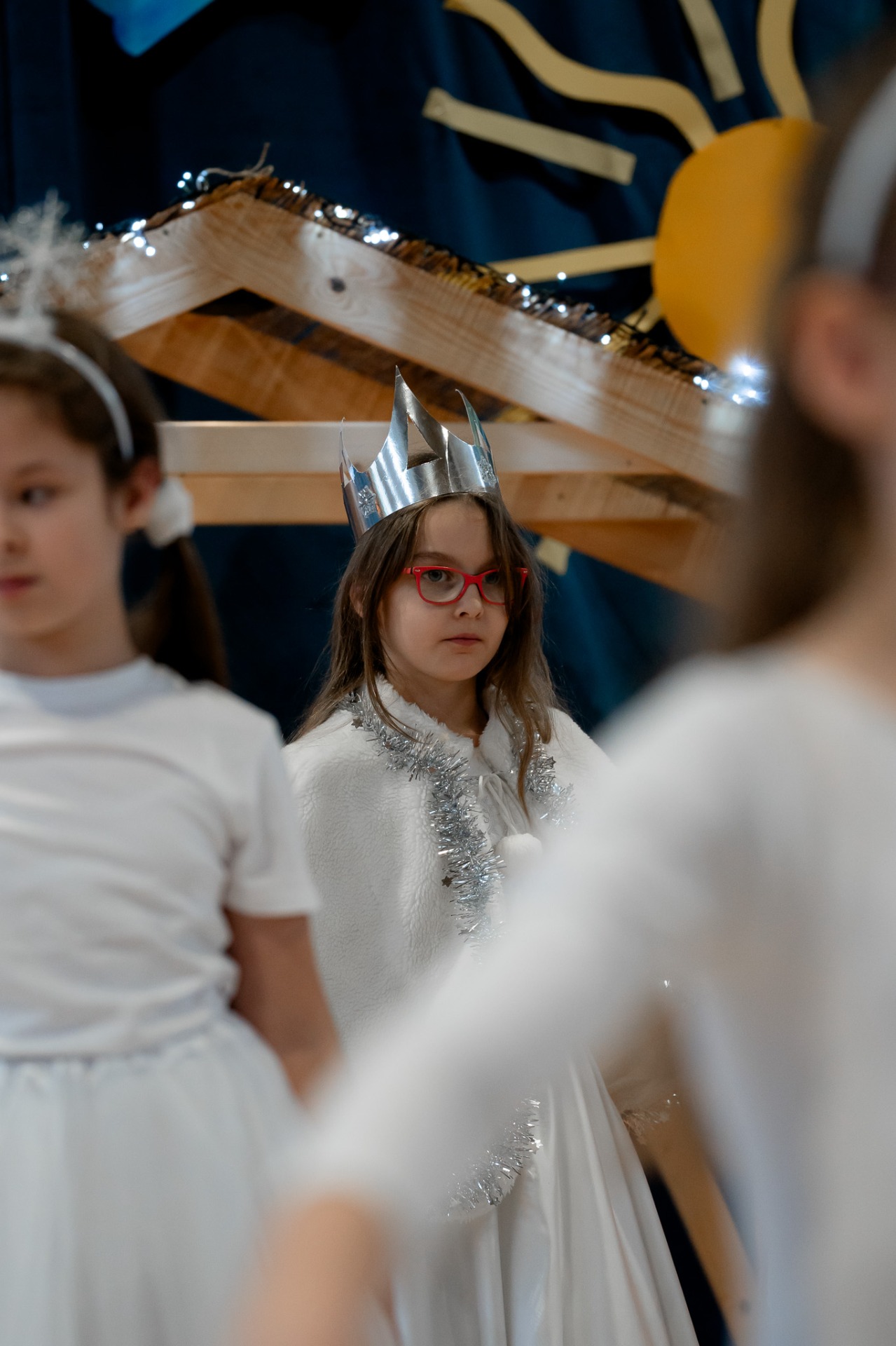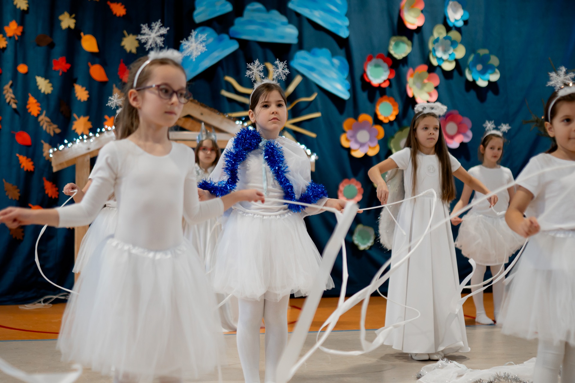 Jasełka, które odbyły się w naszej szkole, były wyjątkowym przeżyciem, pełnym ciepła i refleksji nad tajemnicą narodzenia Jezusa. Ten szczególny czas pozwolił nam na nowo zatrzymać się przy tym, co najważniejsze – nadziei, którą jest Jezus. Przedstawienie prowadziło widzów symbolicznie przez pory roku, ukazując, że Jego obecność towarzyszy nam nieustannie, niezależnie od czasu i okoliczności. Wszystkie dzieci wraz z nauczycielami i pracownikami obsługi wykazali ogromne zaangażowanie w przygotowanie występu. Przedstawienie było bardzo dynamiczne pod względem choreograficznym, kolorowe dzięki scenografii zmieniających się pór roku, obfitowało w piękne słowa i muzykę. Dziękujemy za Waszą pracę i serca włożone w stworzenie tego pięknego, poruszającego świadectwa wiary i wspólnoty.