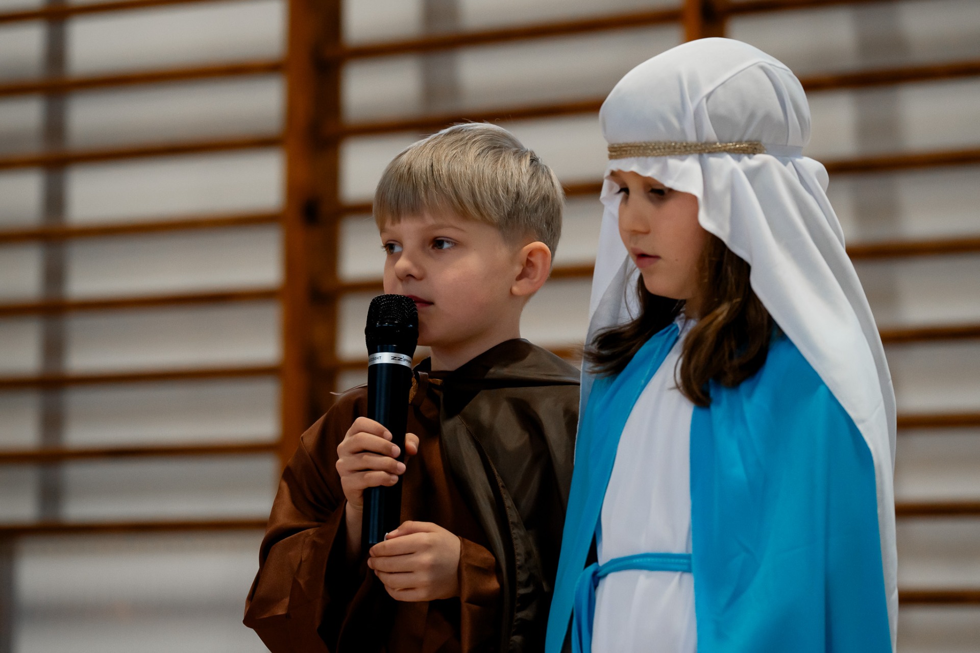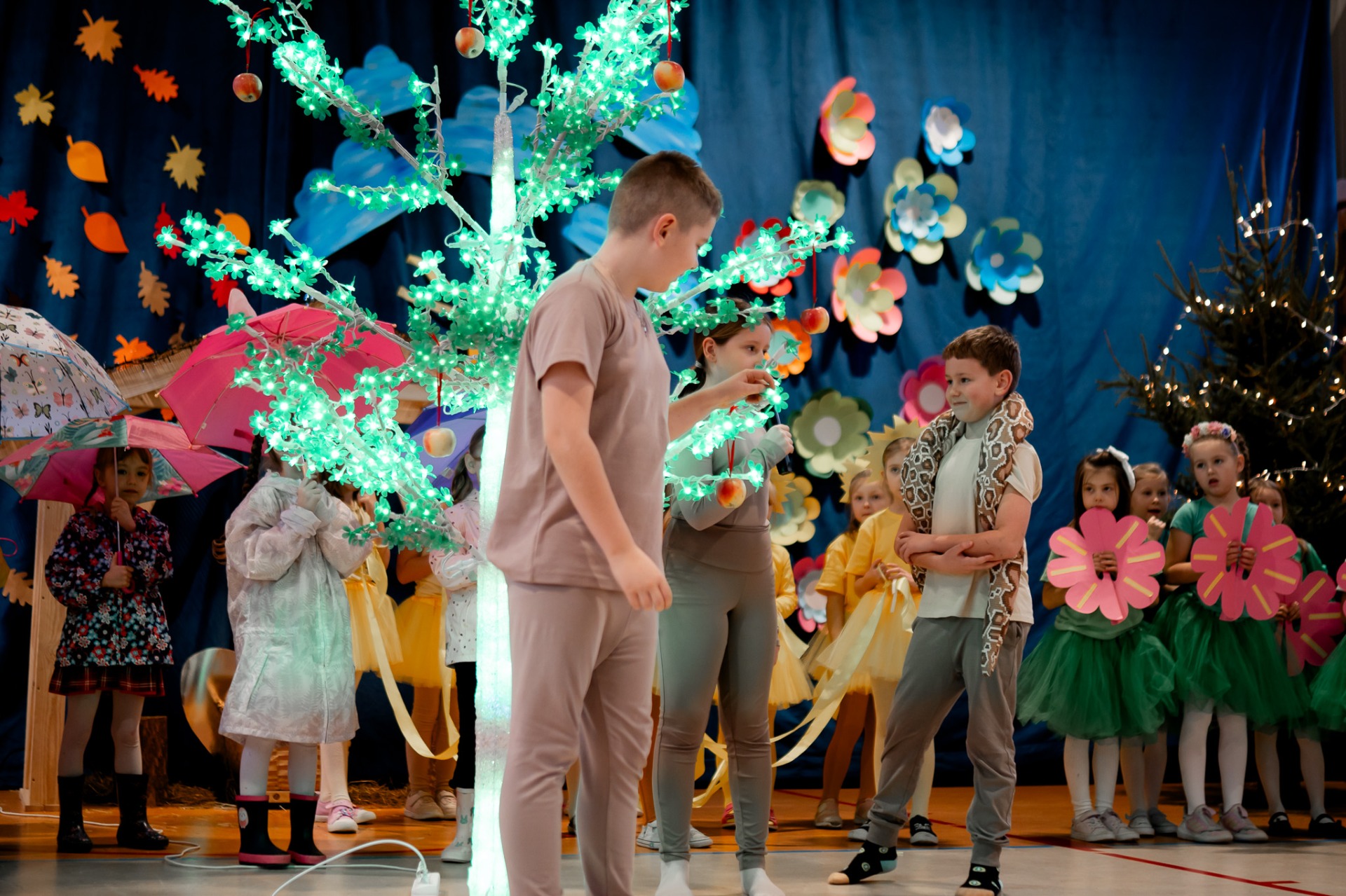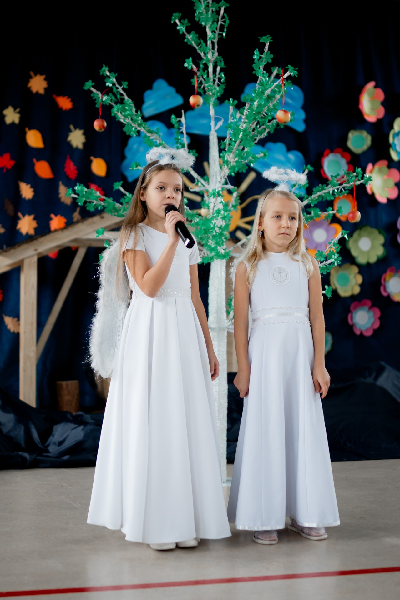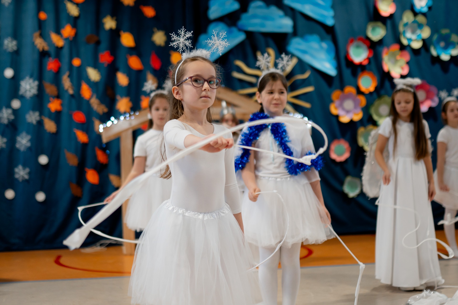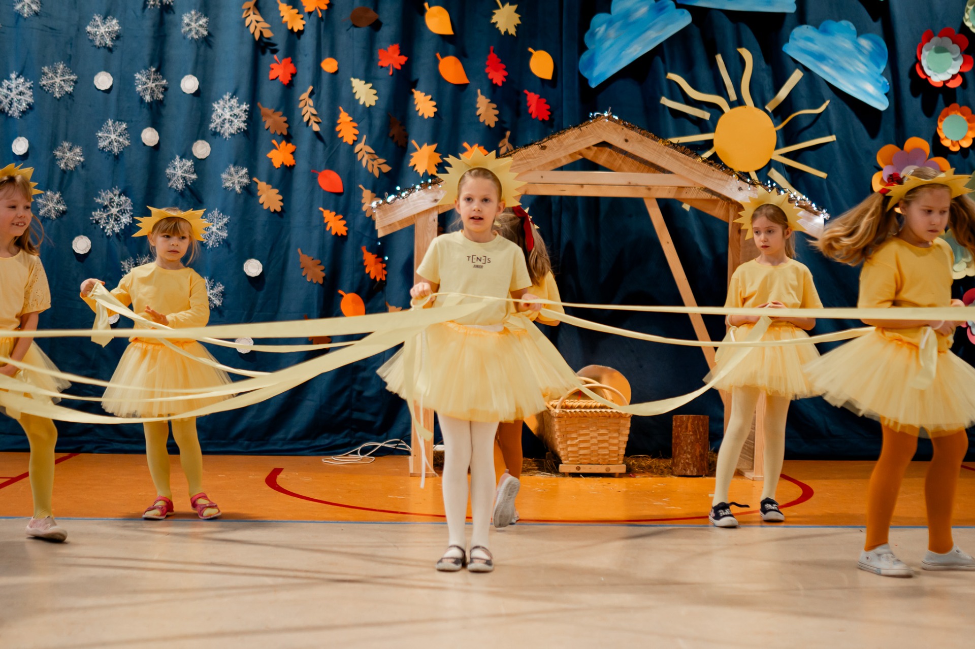 Jasełka, które odbyły się w naszej szkole, były wyjątkowym przeżyciem, pełnym ciepła i refleksji nad tajemnicą narodzenia Jezusa. Ten szczególny czas pozwolił nam na nowo zatrzymać się przy tym, co najważniejsze – nadziei, którą jest Jezus. Przedstawienie prowadziło widzów symbolicznie przez pory roku, ukazując, że Jego obecność towarzyszy nam nieustannie, niezależnie od czasu i okoliczności. Wszystkie dzieci wraz z nauczycielami i pracownikami obsługi wykazali ogromne zaangażowanie w przygotowanie występu. Przedstawienie było bardzo dynamiczne pod względem choreograficznym, kolorowe dzięki scenografii zmieniających się pór roku, obfitowało w piękne słowa i muzykę. Dziękujemy za Waszą pracę i serca włożone w stworzenie tego pięknego, poruszającego świadectwa wiary i wspólnoty.