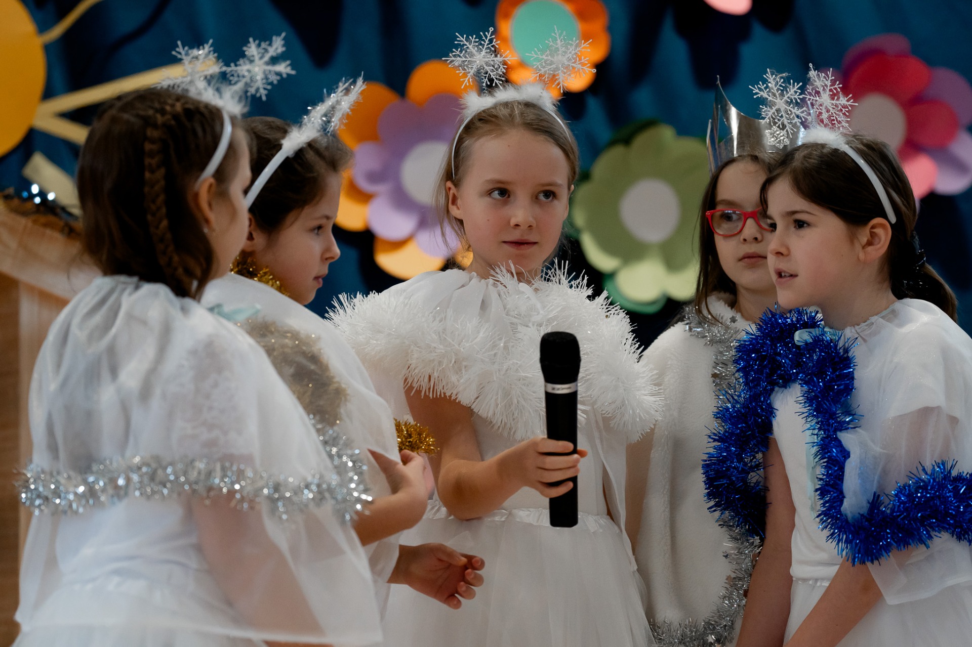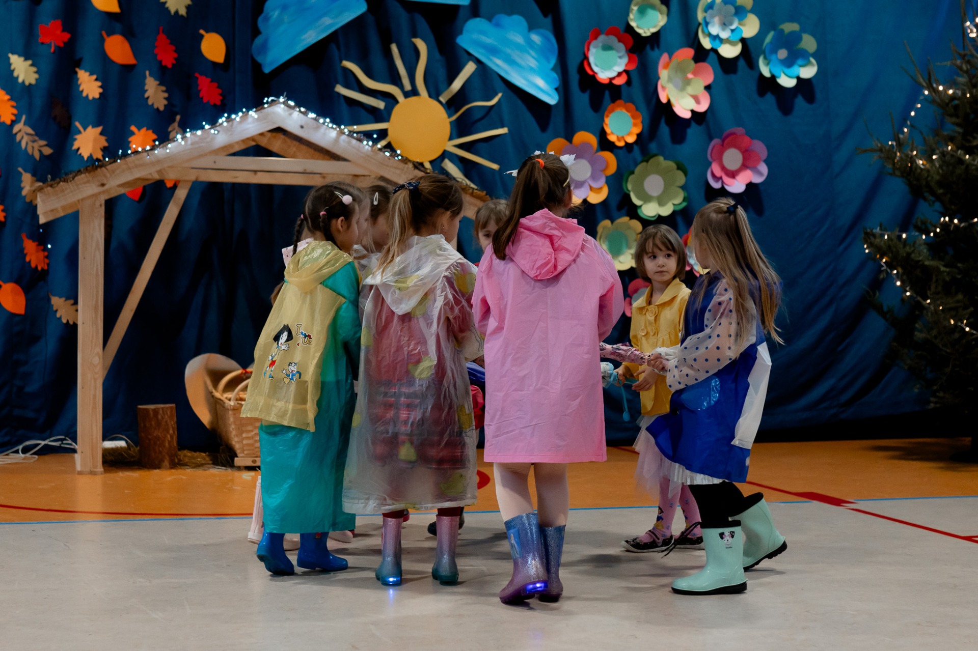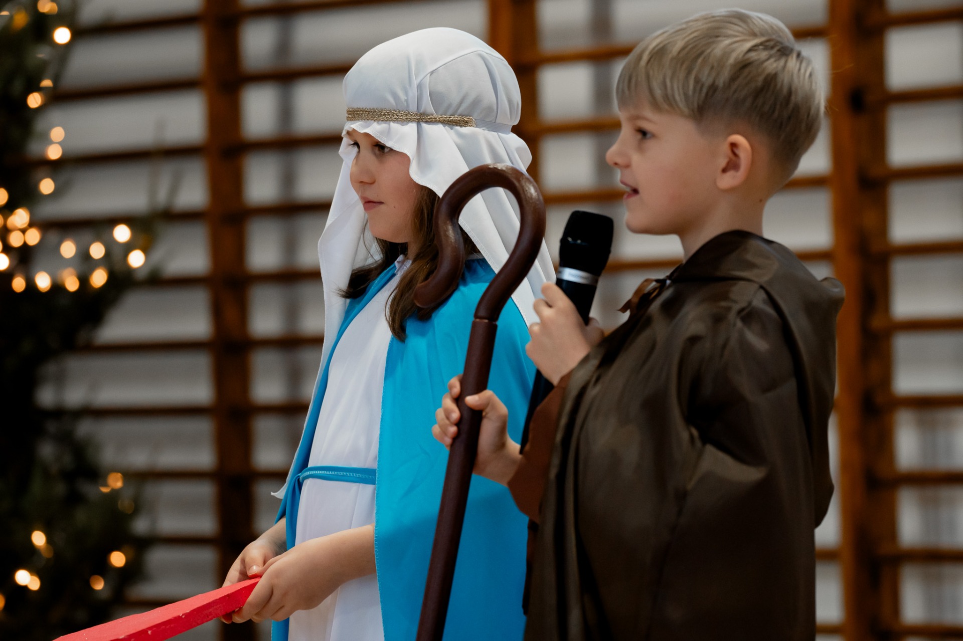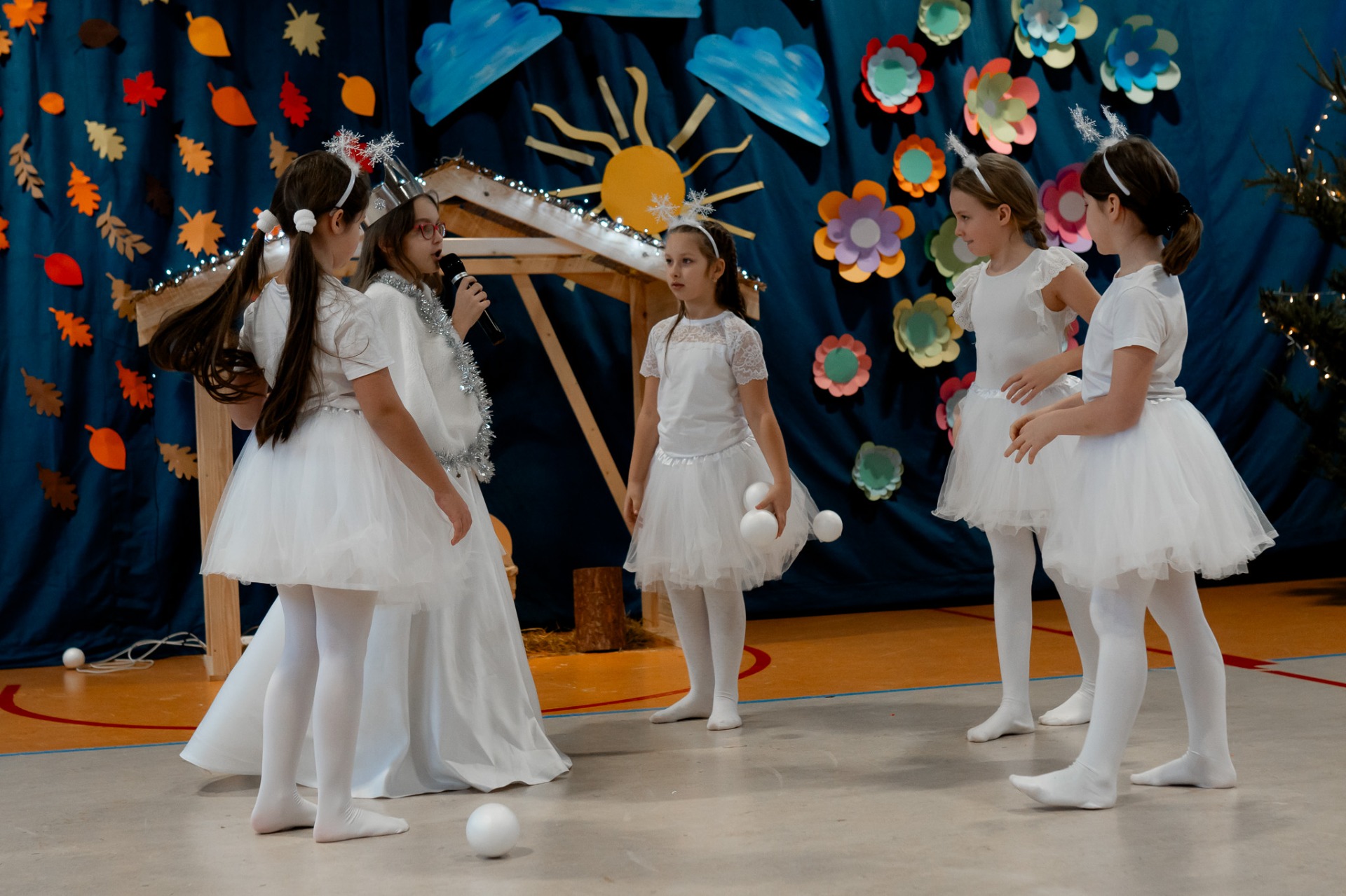 Jasełka, które odbyły się w naszej szkole, były wyjątkowym przeżyciem, pełnym ciepła i refleksji nad tajemnicą narodzenia Jezusa. Ten szczególny czas pozwolił nam na nowo zatrzymać się przy tym, co najważniejsze – nadziei, którą jest Jezus. Przedstawienie prowadziło widzów symbolicznie przez pory roku, ukazując, że Jego obecność towarzyszy nam nieustannie, niezależnie od czasu i okoliczności. Wszystkie dzieci wraz z nauczycielami i pracownikami obsługi wykazali ogromne zaangażowanie w przygotowanie występu. Przedstawienie było bardzo dynamiczne pod względem choreograficznym, kolorowe dzięki scenografii zmieniających się pór roku, obfitowało w piękne słowa i muzykę. Dziękujemy za Waszą pracę i serca włożone w stworzenie tego pięknego, poruszającego świadectwa wiary i wspólnoty.
