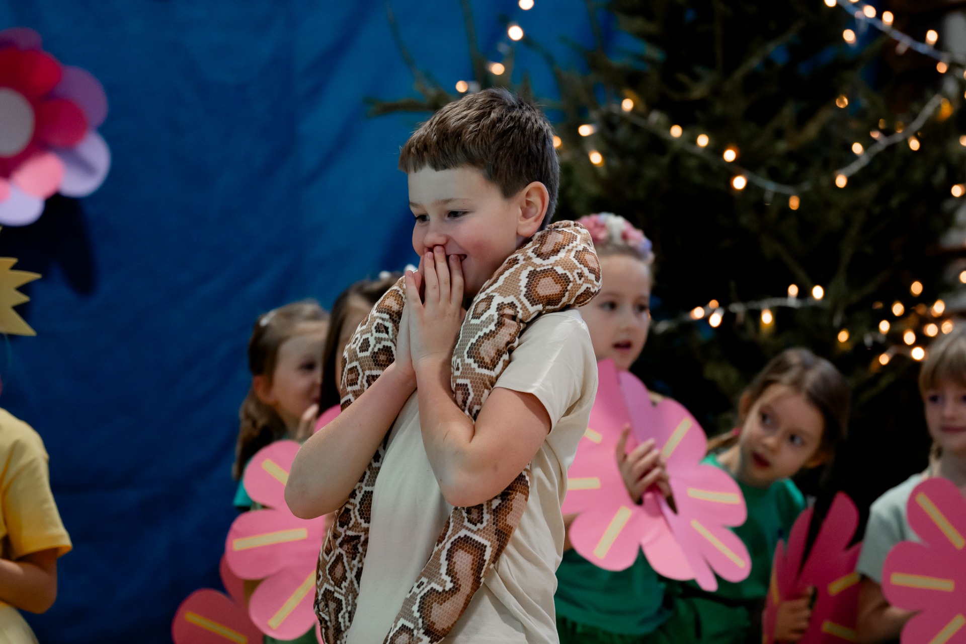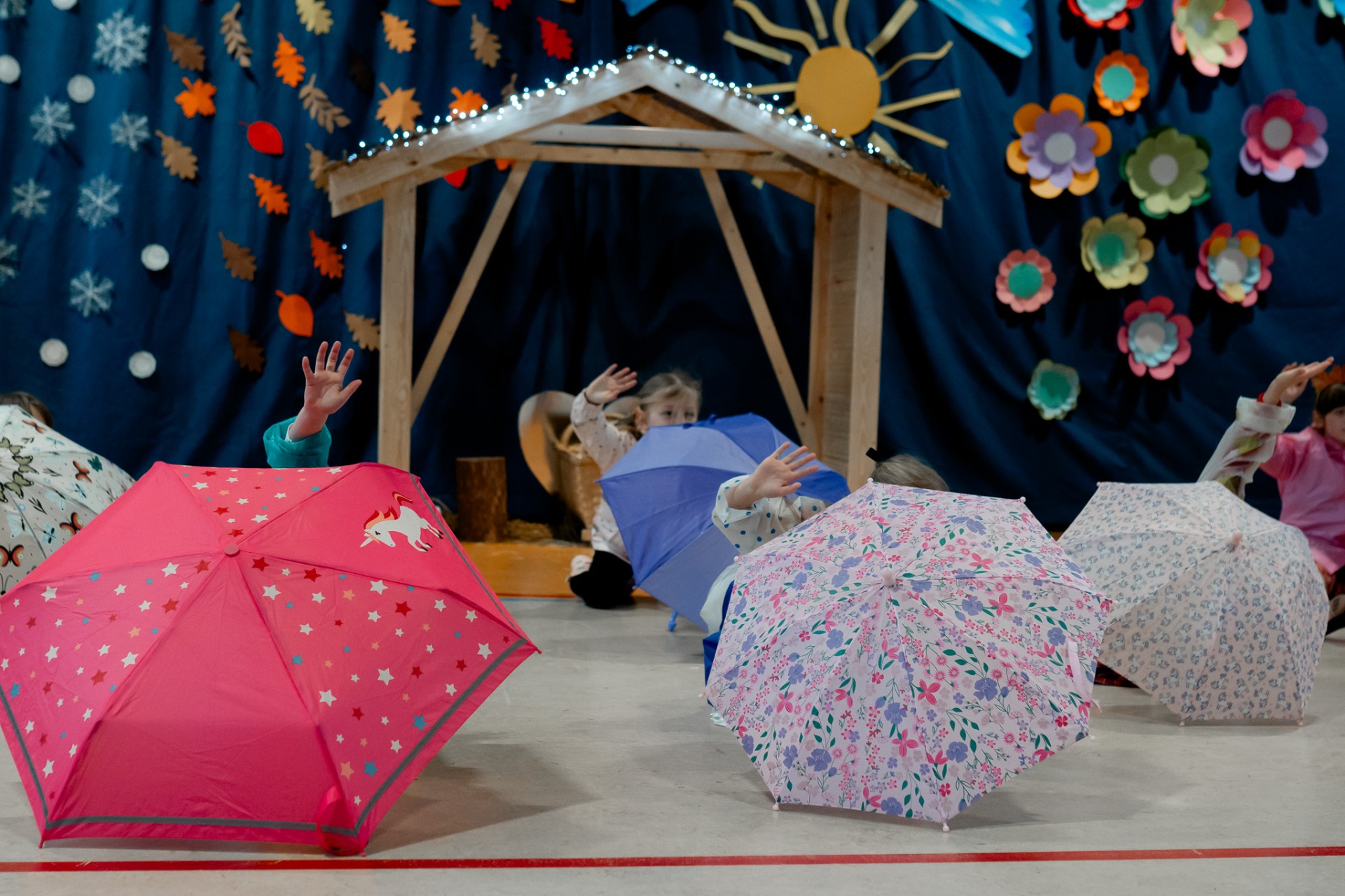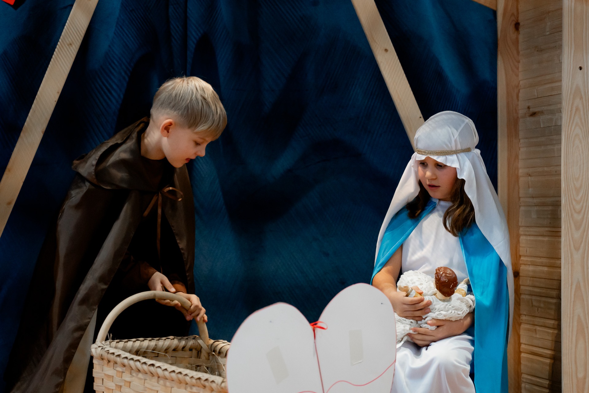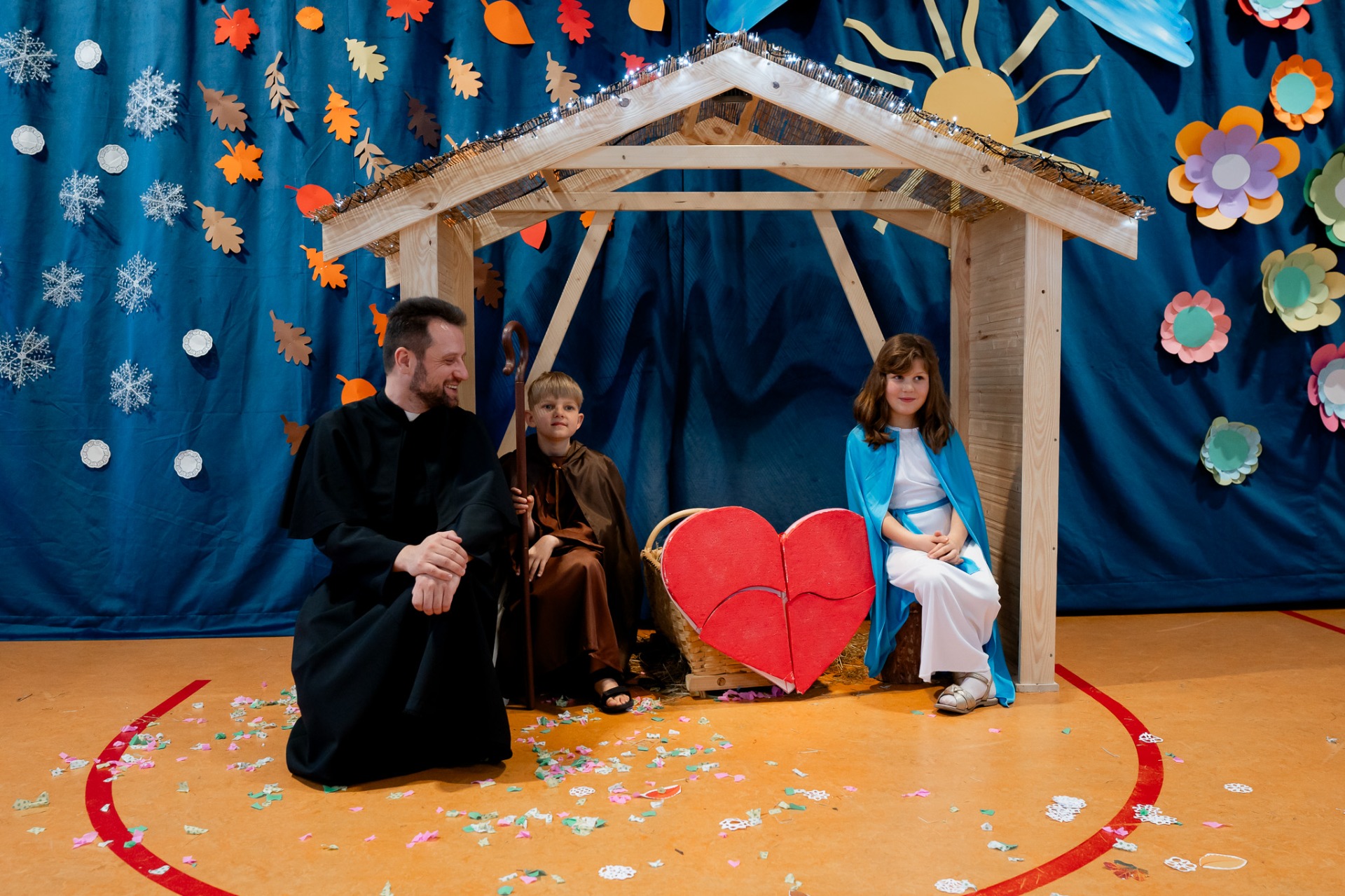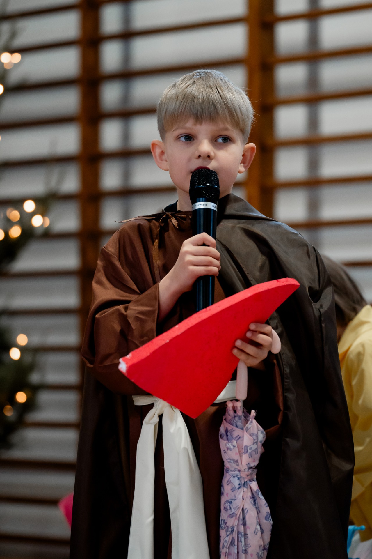 Jasełka, które odbyły się w naszej szkole, były wyjątkowym przeżyciem, pełnym ciepła i refleksji nad tajemnicą narodzenia Jezusa. Ten szczególny czas pozwolił nam na nowo zatrzymać się przy tym, co najważniejsze – nadziei, którą jest Jezus. Przedstawienie prowadziło widzów symbolicznie przez pory roku, ukazując, że Jego obecność towarzyszy nam nieustannie, niezależnie od czasu i okoliczności. Wszystkie dzieci wraz z nauczycielami i pracownikami obsługi wykazali ogromne zaangażowanie w przygotowanie występu. Przedstawienie było bardzo dynamiczne pod względem choreograficznym, kolorowe dzięki scenografii zmieniających się pór roku, obfitowało w piękne słowa i muzykę. Dziękujemy za Waszą pracę i serca włożone w stworzenie tego pięknego, poruszającego świadectwa wiary i wspólnoty.