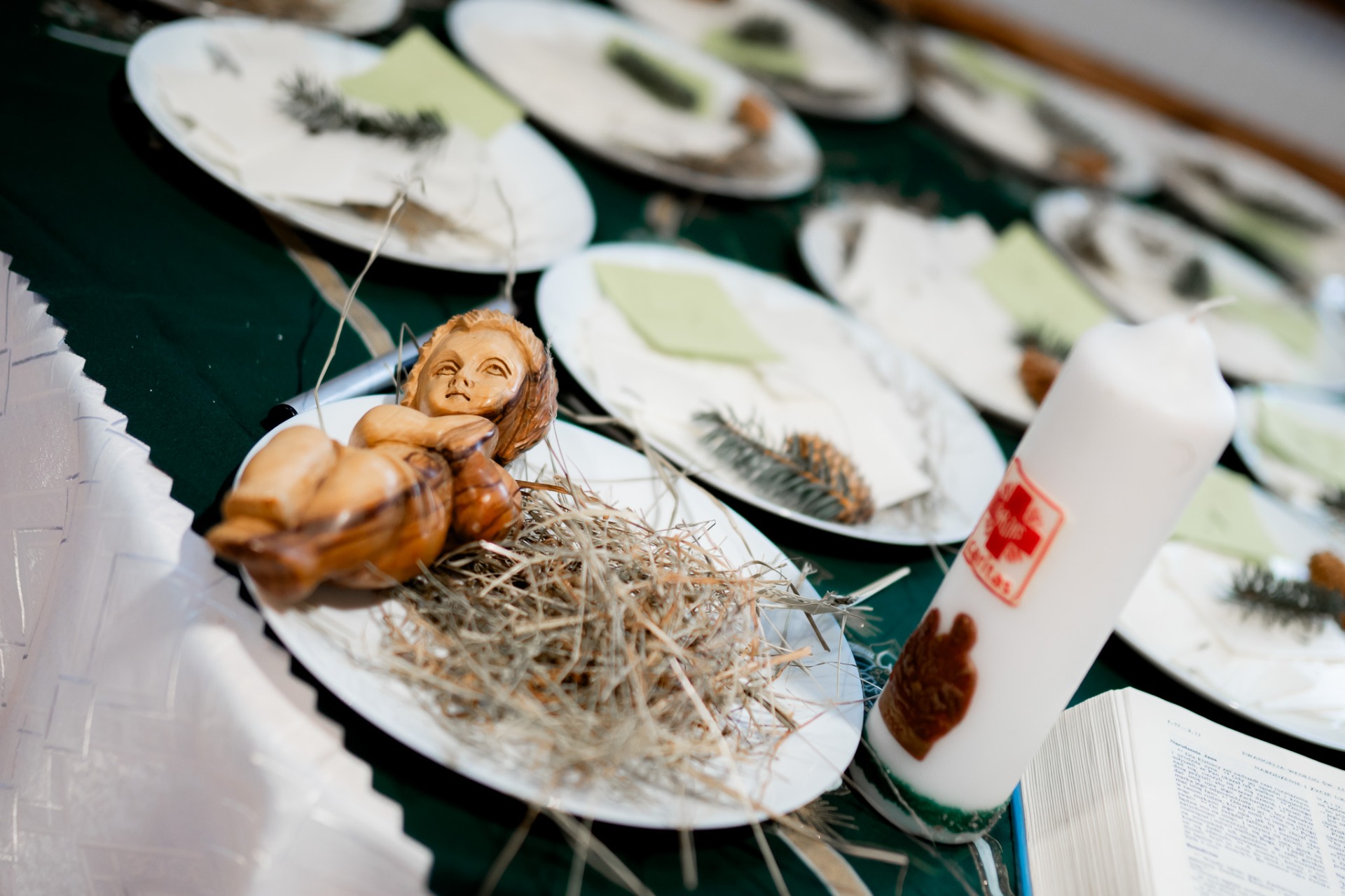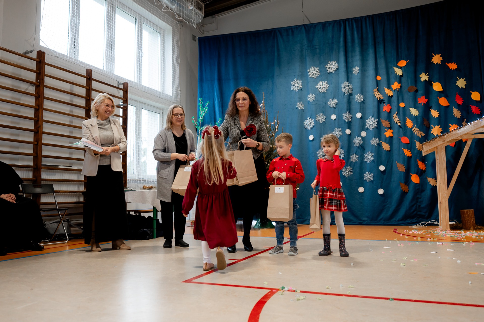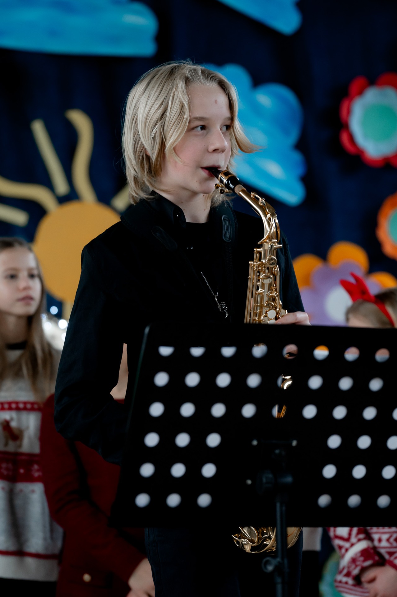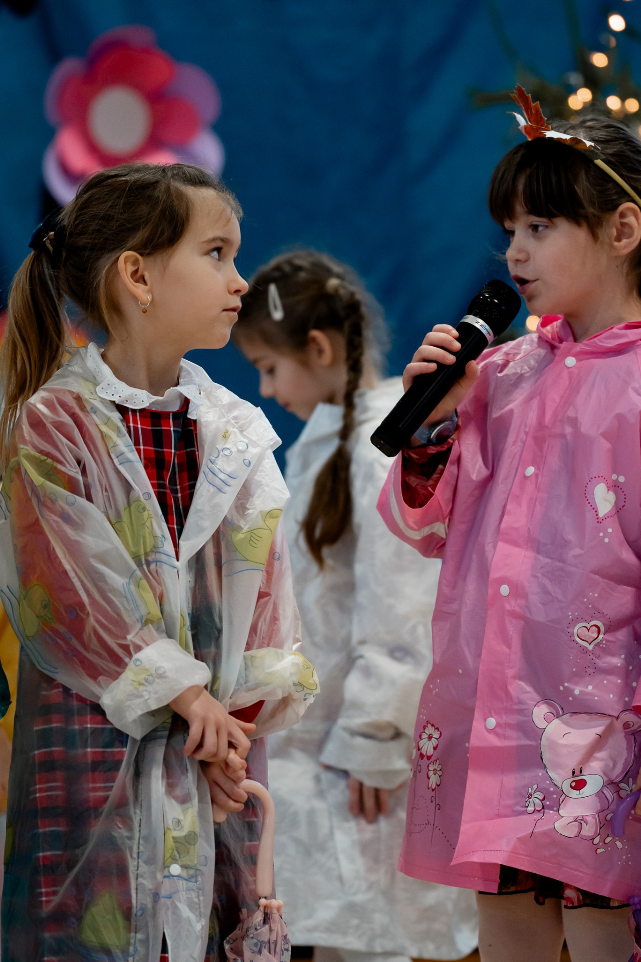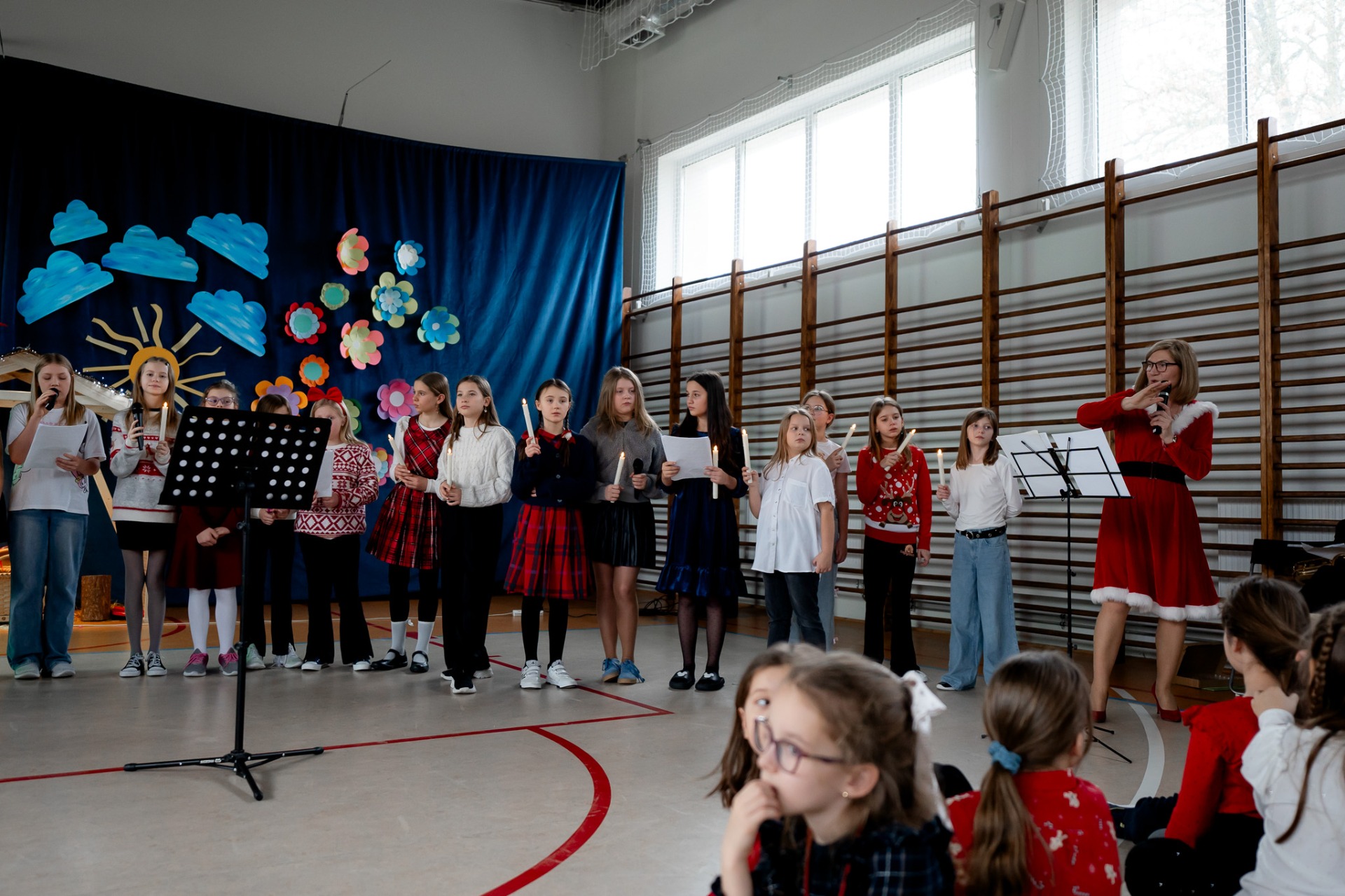 Rano każda klasa przygotowała swoją salę na spotkanie wigilijne, po czym wszyscy udali się na salę gimnastyczną, gdzie dzieci klas – drugiej, pierwszych i przedszkolnej grupy „Pszczółek” wystawiły Jasełka pt. „Cztery pory roku”. Występy zostały poprzedzone odczytaniem fragmentu Pisma Świętego o Narodzeniu Pana Jezusa, który odczytał ks. Michał Owczarz.