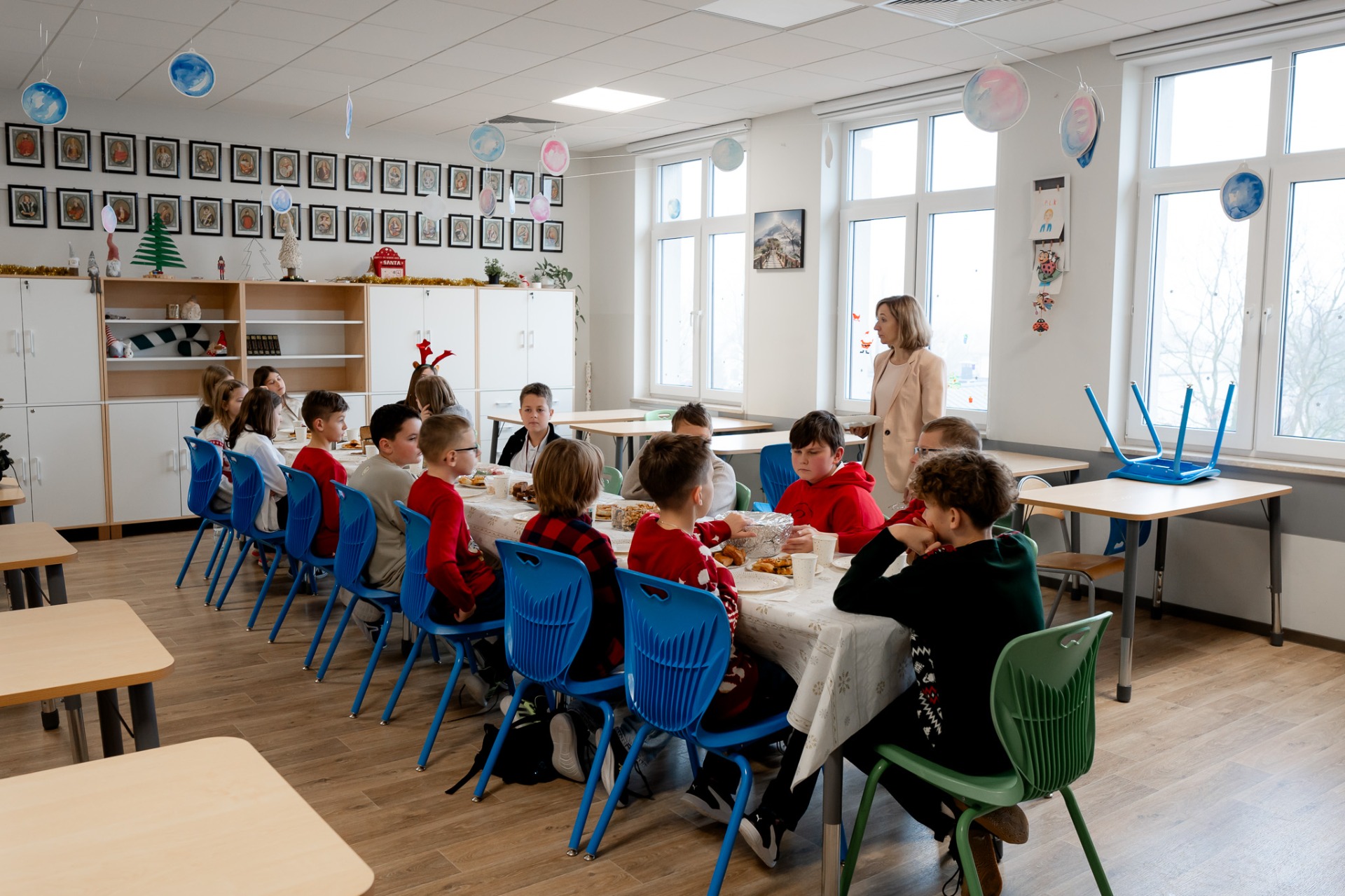 Po przedstawieniu pani dyrektor złożyła życzenia świąteczne wszystkim uczniom i ich rodzinom, po czym wszyscy udali się na klasowe spotkania wigilijne.