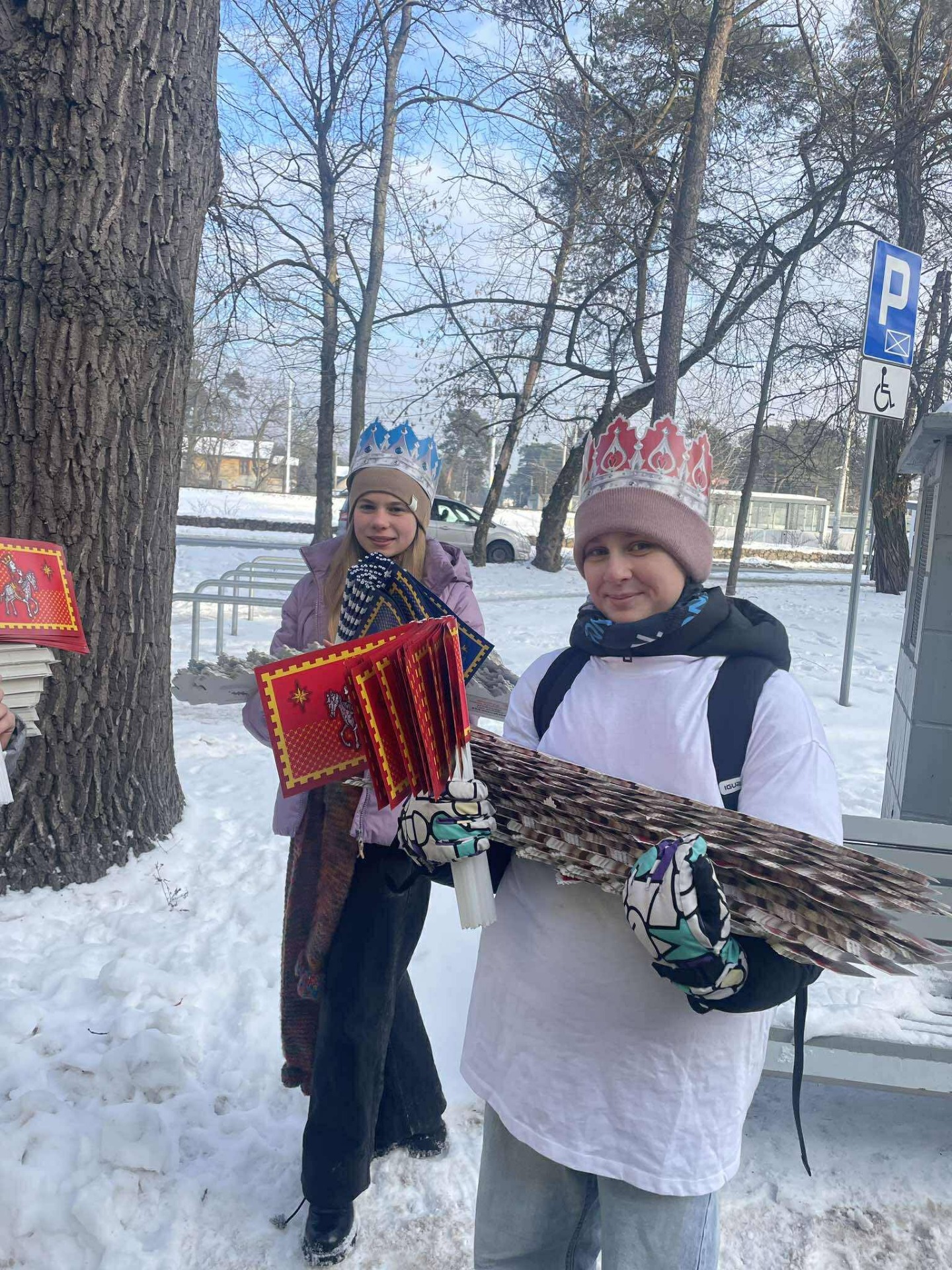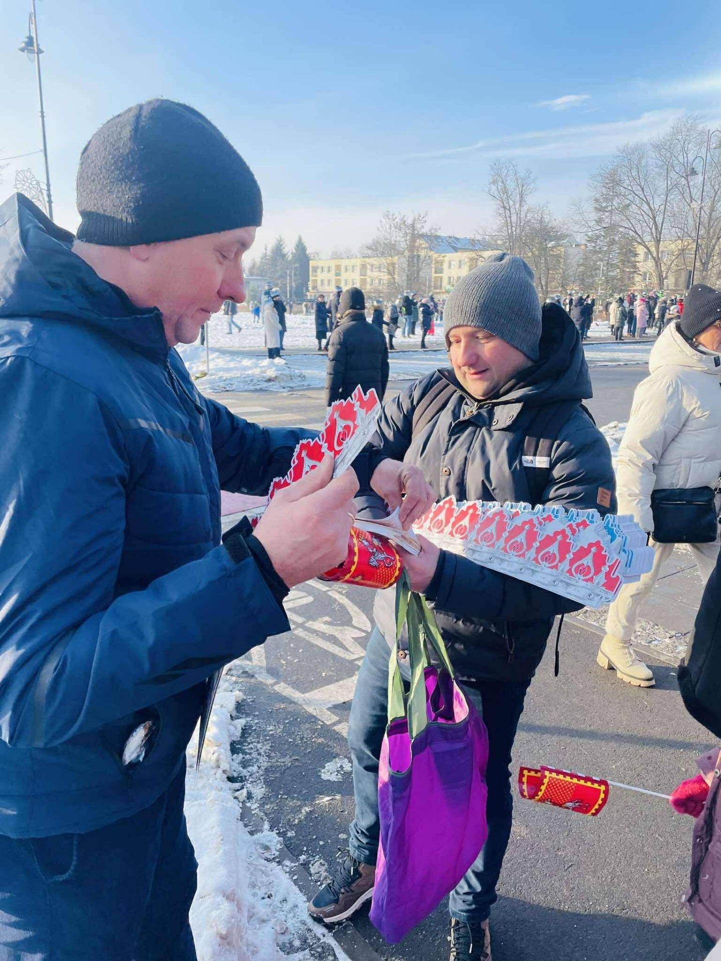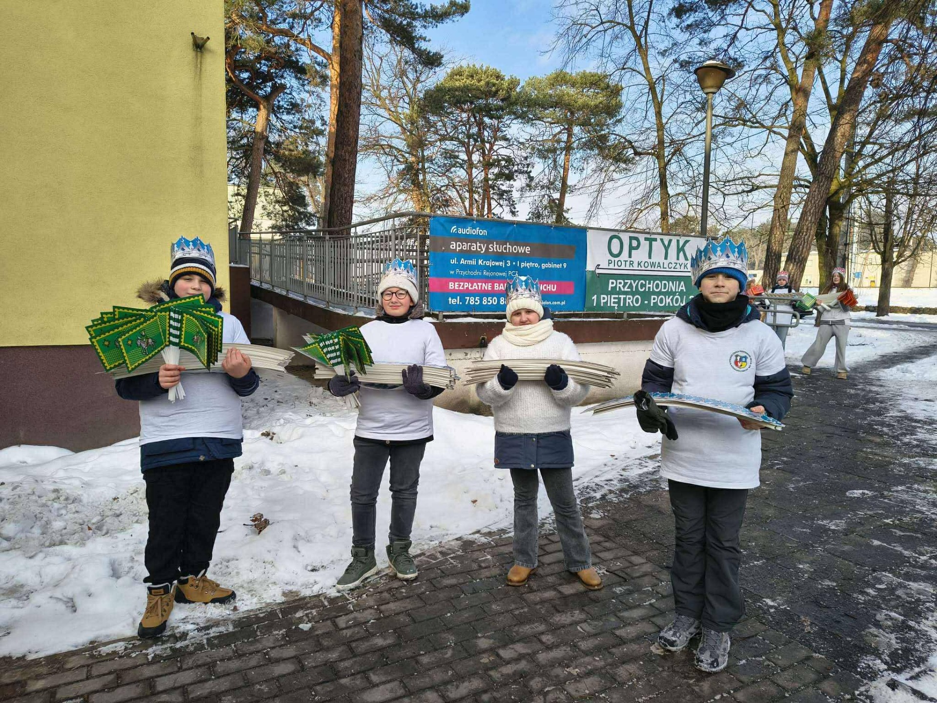 Nie było czasu na robienie zdjęć – tak bardzo byliśmy zajęci! Uczniowie wraz z rodzicami stawili się punktualnie w samo południe na miejscu zbiórki, gotowi do działania. Naszą rolą w tym roku była dystrybucja koron, śpiewników oraz chorągiewek, aby każdy uczestnik mógł w pełni przeżyć to wyjątkowe wydarzenie.