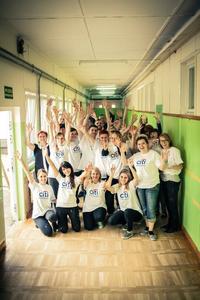 Wolontariusze w szkole - malowanie korytarzy